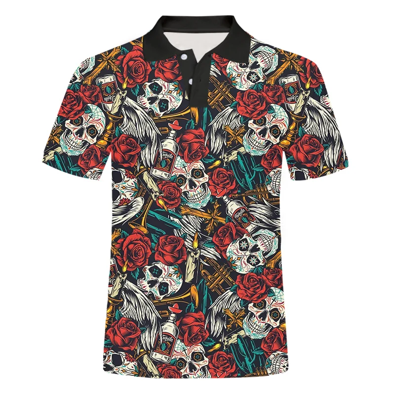 Pattern TypeSkull Flower 3D Print Polo Shirt