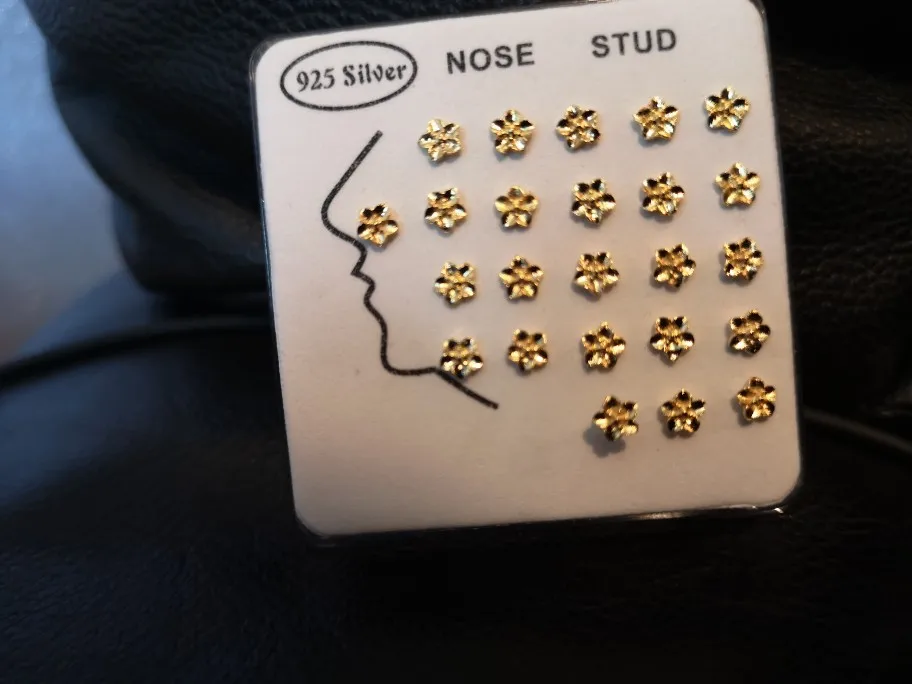 24 шт.кор. Нос Шпильки стерлингового серебра 925 Цвет серебристый, золотой цветок нос пирсинг украшения тела ювелирные изделия для женщин; Черные ботинки в стиле панк; Вечерние Оптовая продажа Новый