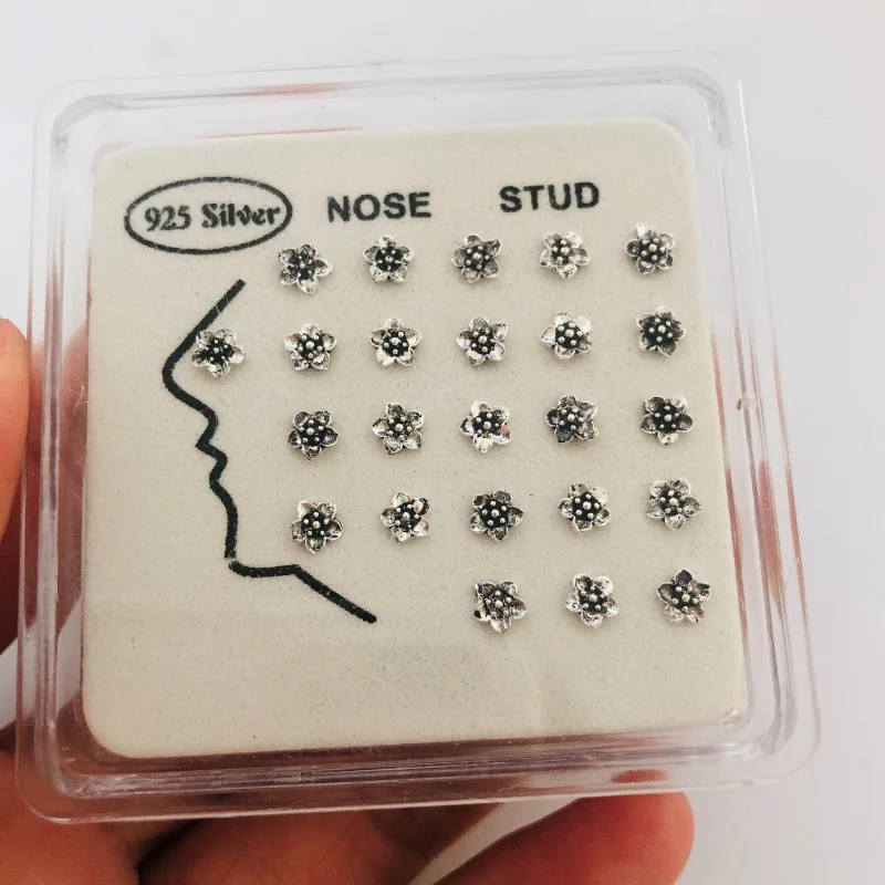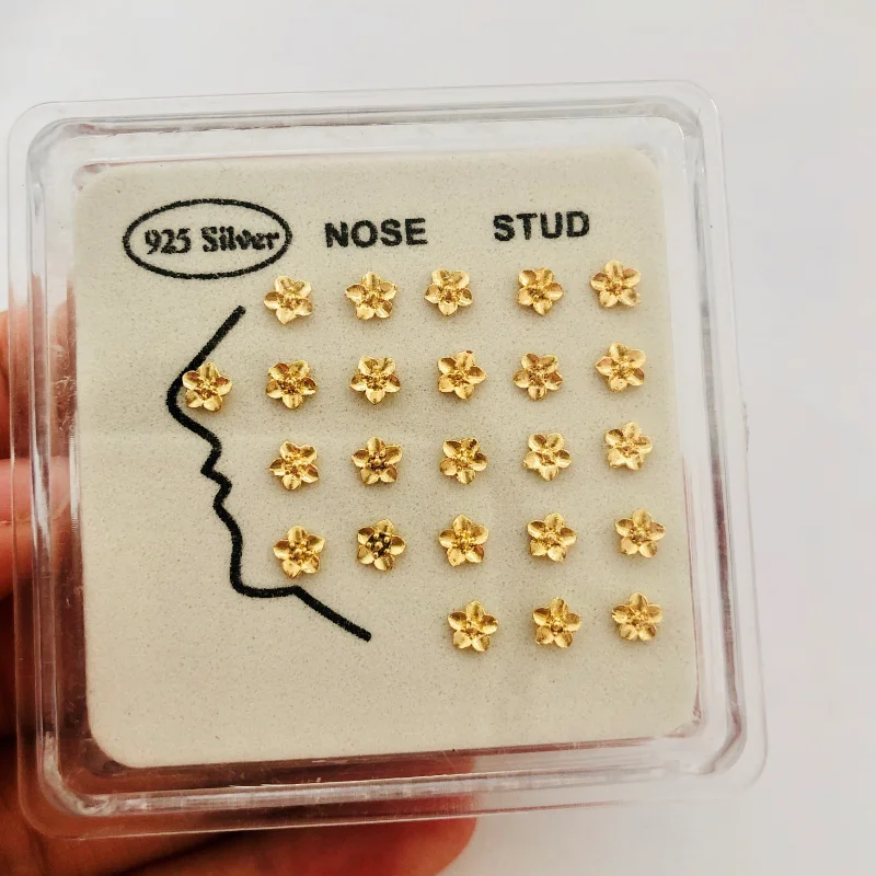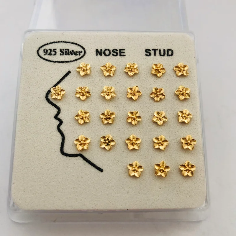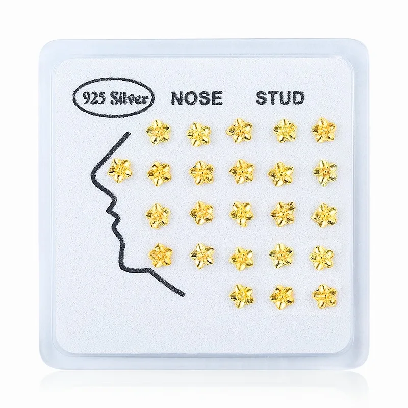 24 шт./кор. Нос Шпильки стерлингового серебра 925 Цвет серебристый, золотой цветок нос пирсинг украшения тела ювелирные изделия для женщин; Черные ботинки в стиле панк; Вечерние оптовая продажа