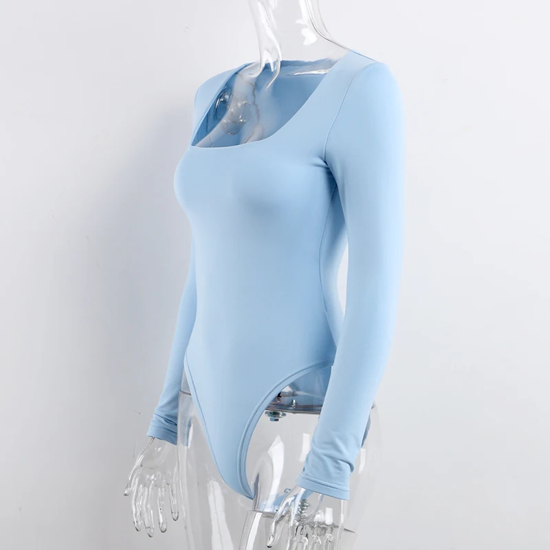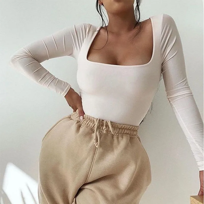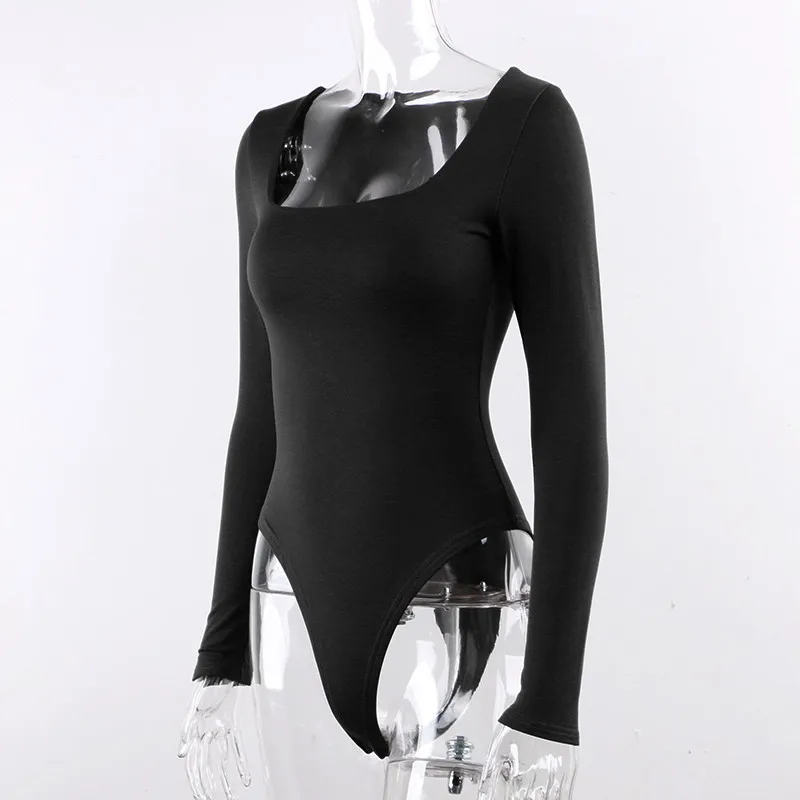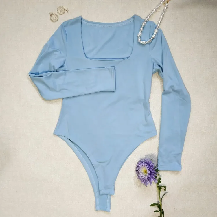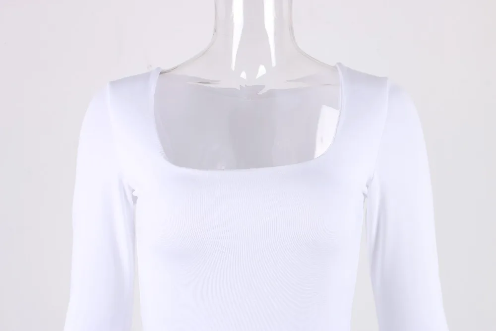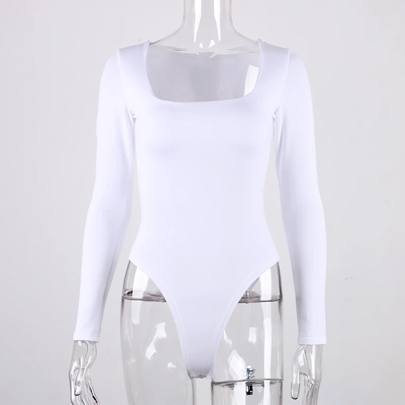 Боди женское с квадратным вырезом, с длинным рукавом, Осеннее, белое