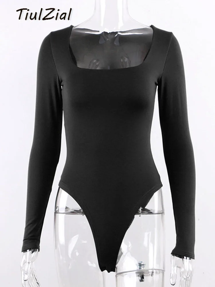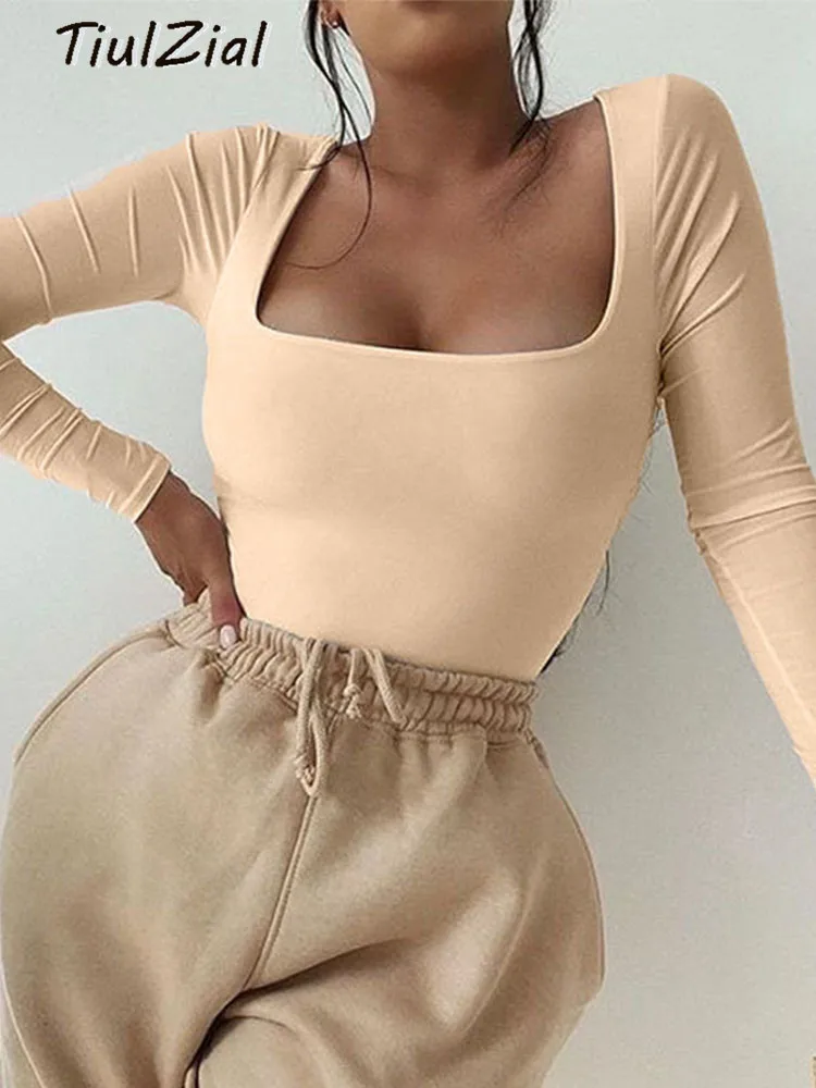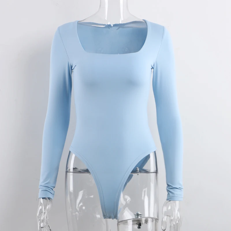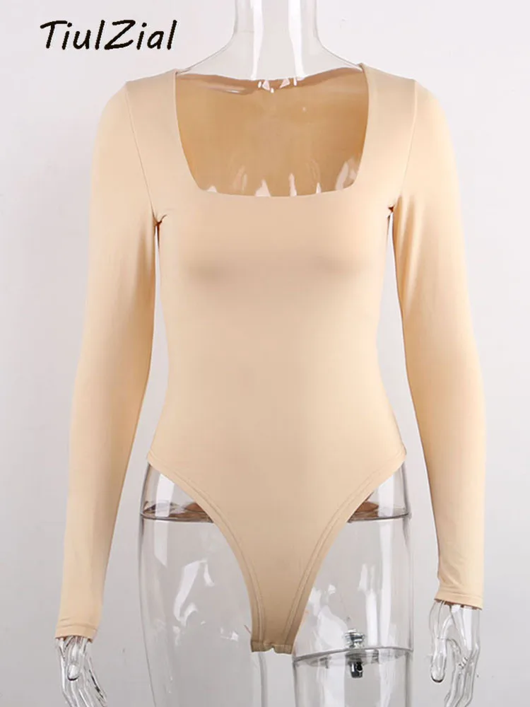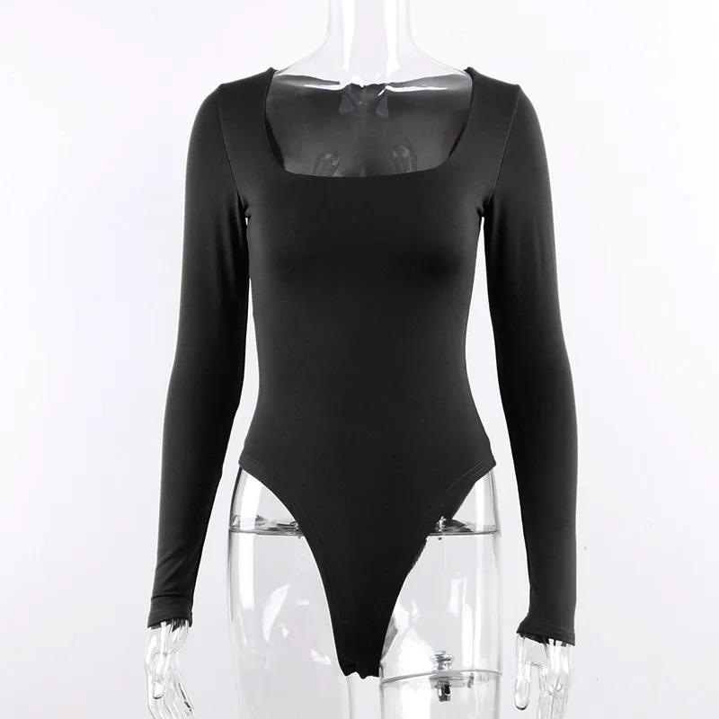 Боди женское с квадратным вырезом, с длинным рукавом, Осеннее, белое