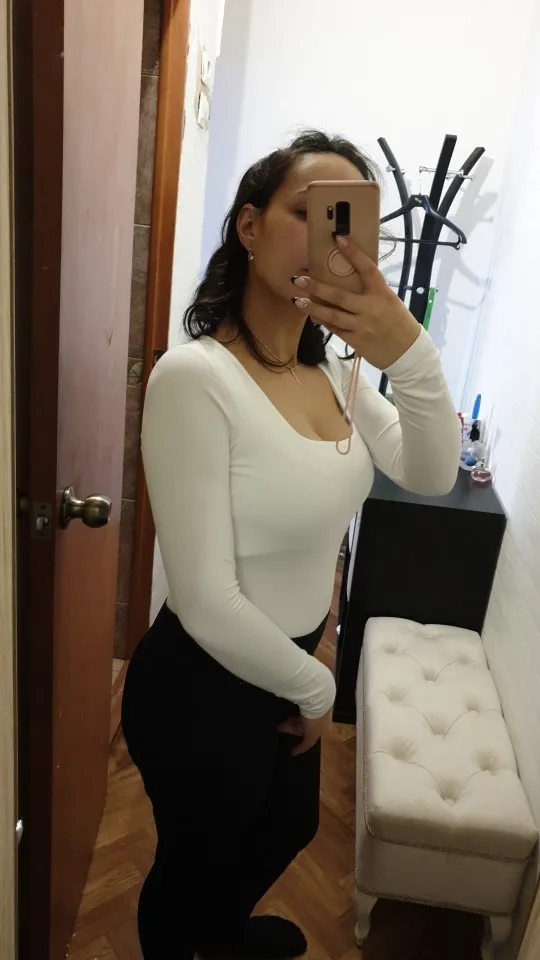 Крой очень простой. Квадратная глубокая горловина, длинный рукав м низ на кнопках. На выбор 5 цветов. Я взяла универсальный черный Ткань приятная. Состава нет. Продавец на странице магазина заявляет, что это полиэстер и спандекс. Ткань мягкая, тонкая, не светится. По крайней мере в моем оттенке. С обратной стороны не большой начес, бархатистая и приятная к телу поверхность Вырез квадратный, глубокий. На мой рост так и норовит оголить грудь. Кстати, в области груди ткань двойная. Рукава длинные, не широкие, но и не в облипку Низ трусики довольно открытые, но не стрингами. Застёгивается на 3 кнопки Что касается швов и внутреней стороны, то здесь все идеально. Ни единой лишней нитки. Все аккуратно, без зацепок. Качество супер Я взяла в размере М. Основные замеры в блокноте На 86-66-93 и 173 сел хорошо. Даже не много свободно. Но так как высокий рост, боялась, что будет тянуть. Рукава тоже хорошо Боди отличный! Отличный вариант зимы, когда не хочется, чтобы была открытая спина