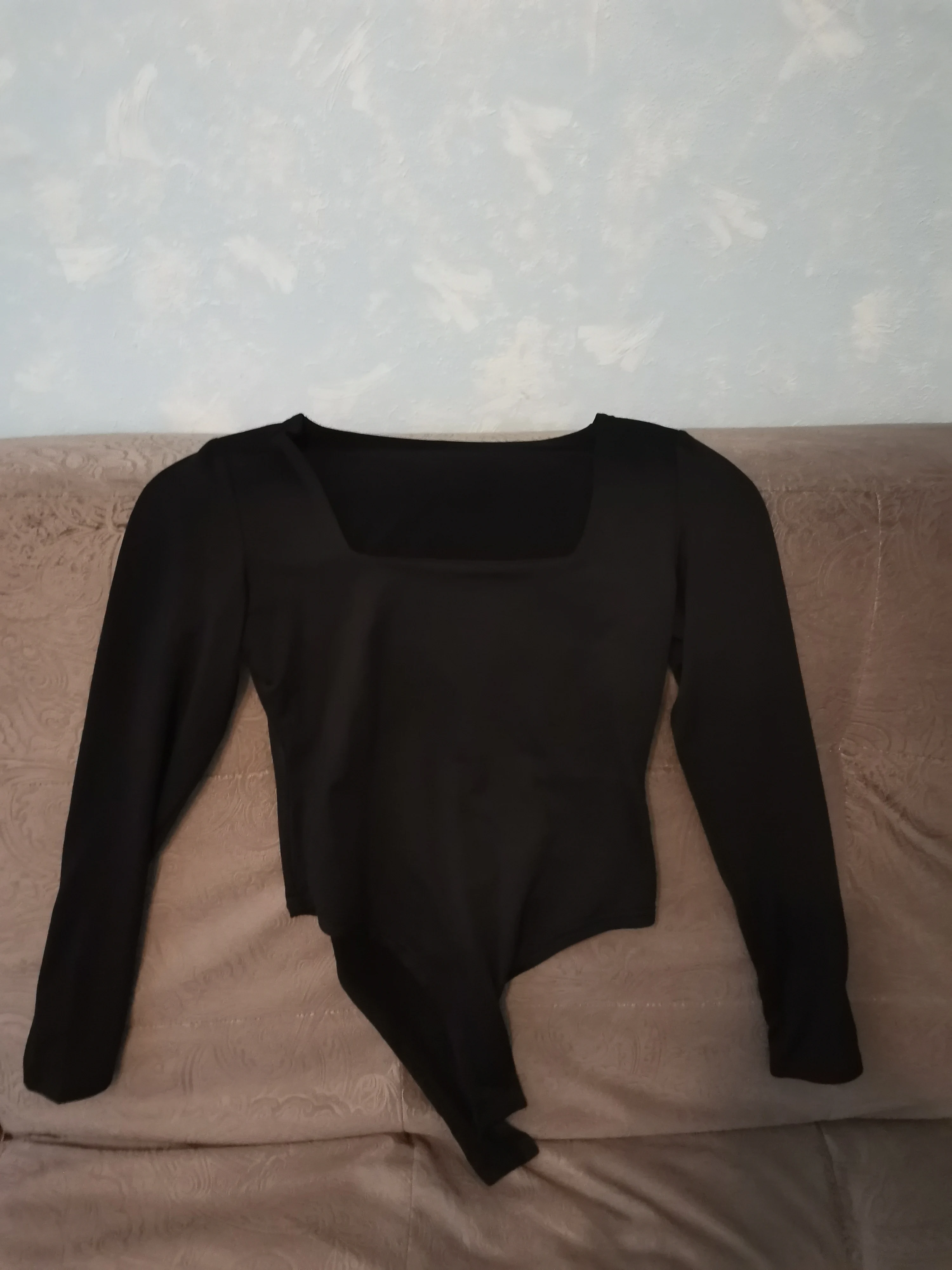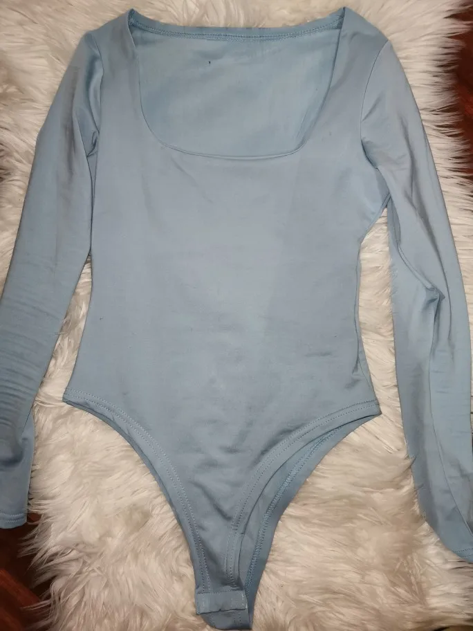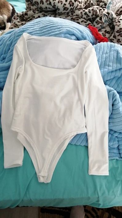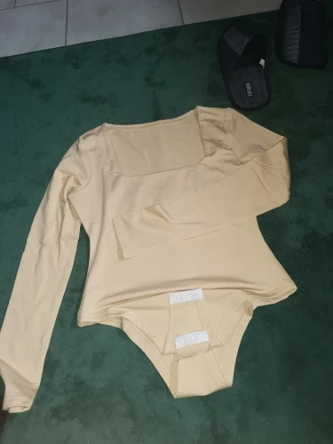 Красивое боди с квадратным вырезом горловины, смотрится интересно и стильно. Материал гладкий, очень эластичный, тянется хорошо. Размер L идеально подошел на параметры 90 - 63 - 90 На рост 170 см тоже отлично. Не тянет и не сборит. Рукава полноценные. Снизу боди застегивается на пластиковые кнопочки. Ткань спереди сверху двойная до середины, поэтому сквозь неё не выделяются части бюста, выглядит на теле достойно. Изнутри материал слегка утепленный, с небольшим мягким ворсом. Качество вещи хорошее, рекомендую.