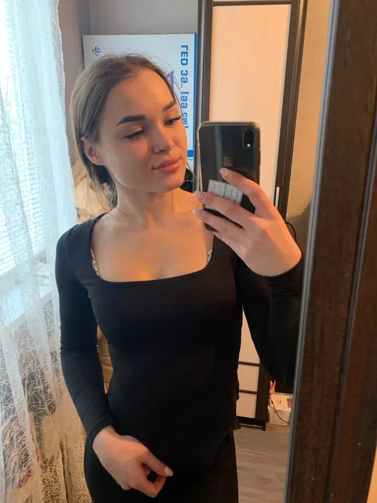 Отличный бодик, внутри что-то похожее на флис, приятное к телу. На уровне груди подклад, на фото без лифчика. Не знаю, как будет в носке, боюсь, как бы между ног заклепки не мешались)) ещё нюанс, о котором не подумала, когда заказывала - если носить с юбкой карандаш, то на попе сильно видно края) но сидит прекрасно, мне понравилось и пришло всего дней за 12 дней до Магнитогорска