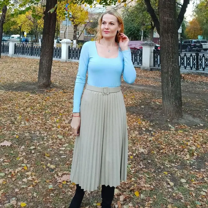 На свои параметры 90 /72 /92 , рост 164 см я выбрала размер L и голубой цвет. Подошло отлично, по росту отлично, наверное можно взять и М, чтобы не было складок на руках, но я не рискнула. боди тянется, подойдёт на чуть большие параметры. Измерения Ширина в груди 40 см Ширина в талии 34 Ширина в бедрах 40 см. Длина 71 см. Измерения в не растянутом состоянии. Материал 95% полиэстер, 5% хлопок. Снаружи боди гладкое, изнутри небольшой начёс, боди тепленькое. К телу очень приятное. Вырез у боди квадратный, красивый, не слишком. Рукава отличной длины. В районе груди изнутри два слоя ткани. Швы идеальные, лишних ниток нет. Боди очень понравилось, ношу с удовольствием.