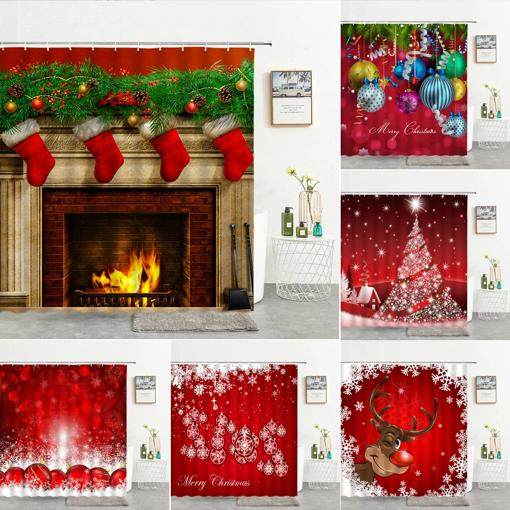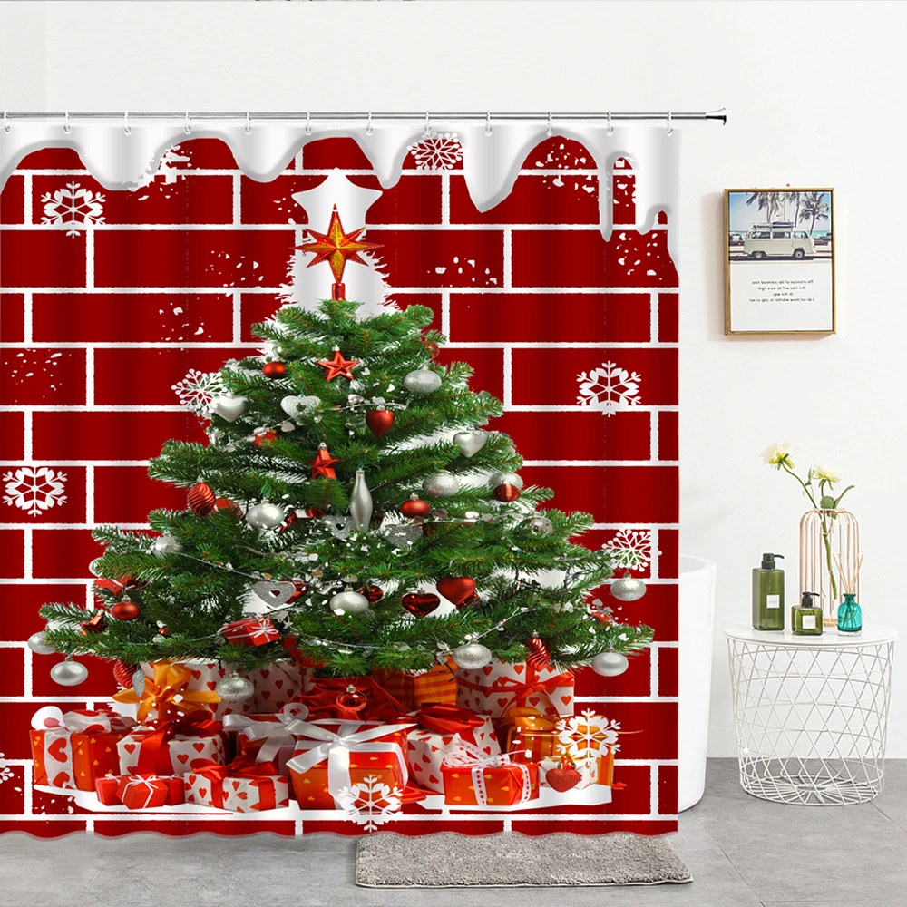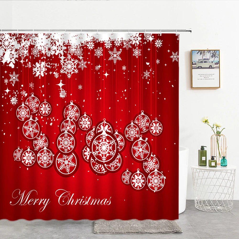 Рождественская занавеска для душа с крючками, занавески для ванной, 3d занавеска для душа, для ванны, цветок, снежинка, водонепроницаемая декоративная занавеска