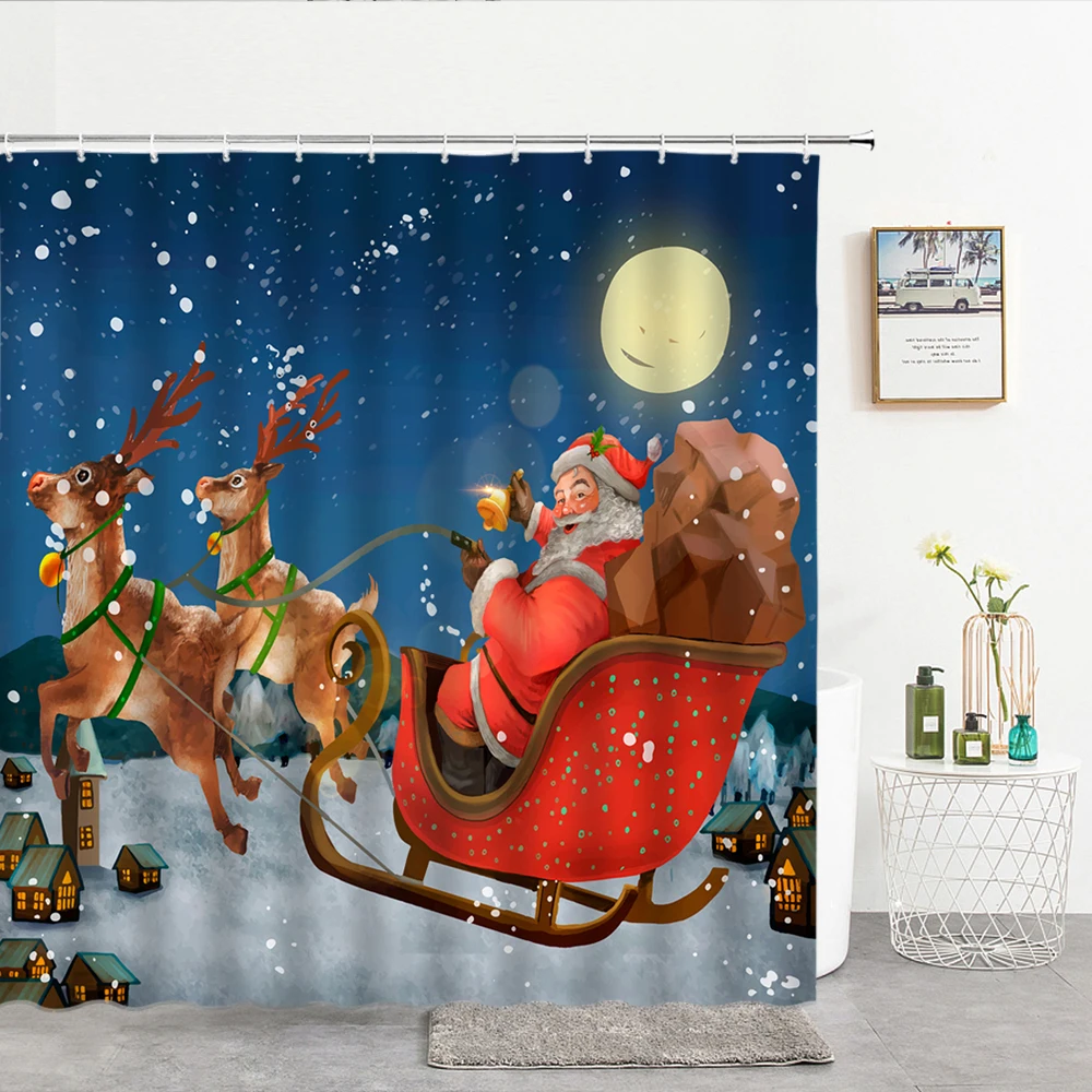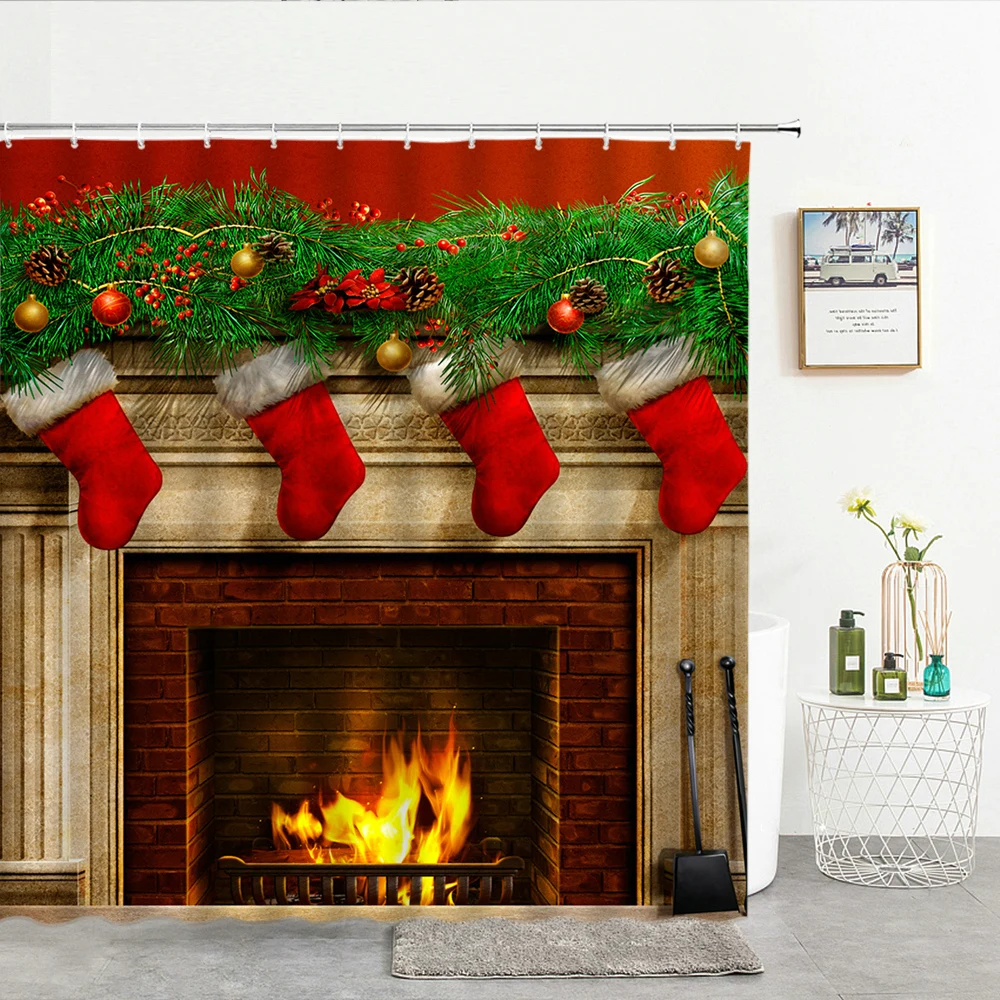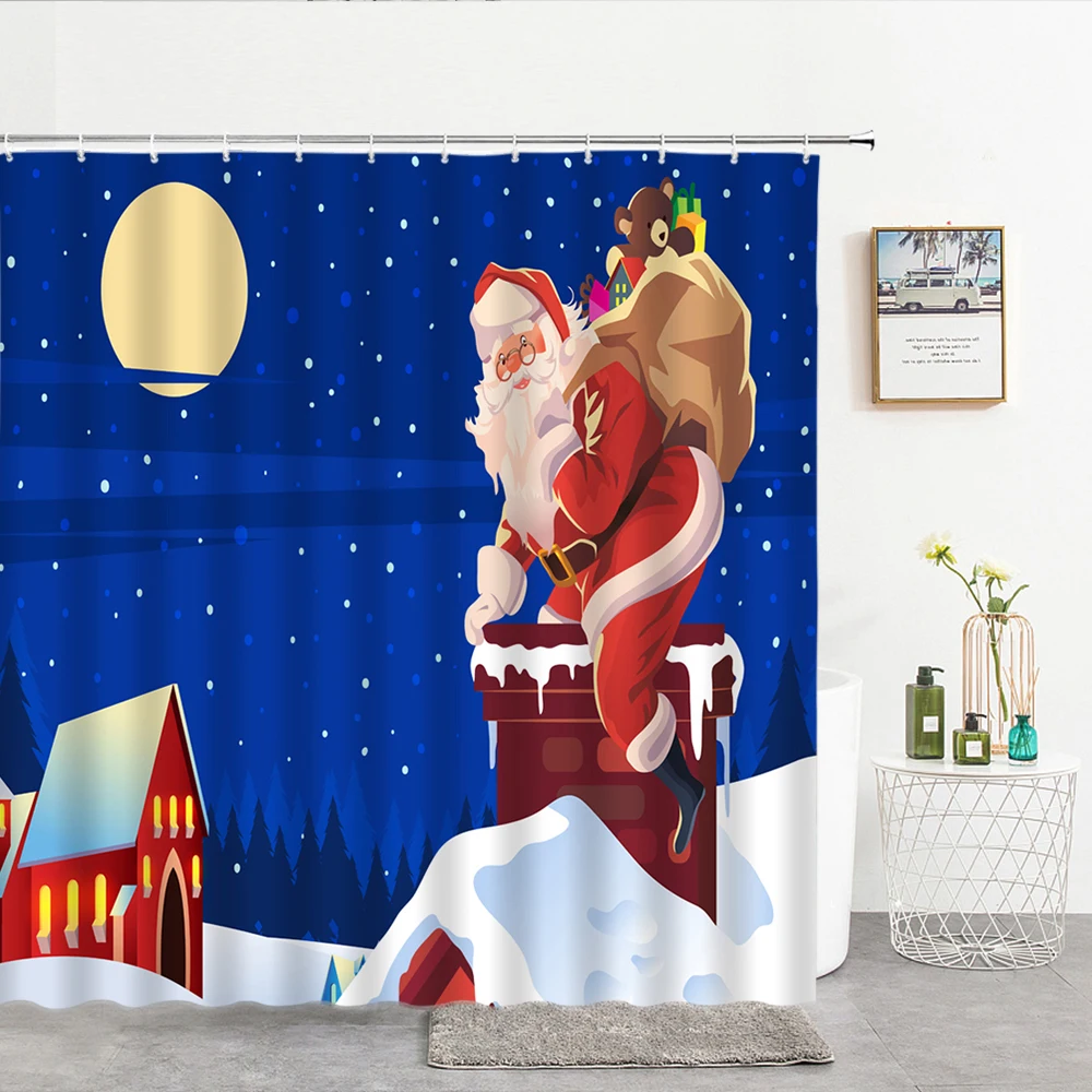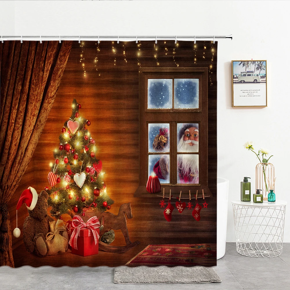 Рождественская занавеска для душа с крючками, занавески для ванной, 3d занавеска для душа, для ванны, цветок, снежинка, водонепроницаемая декоративная занавеска