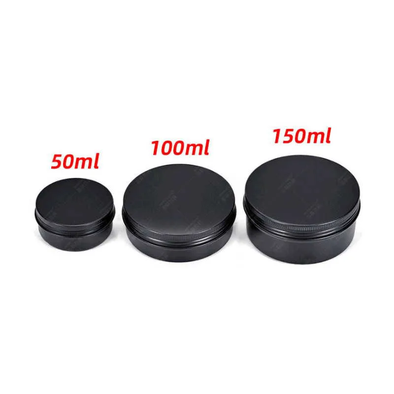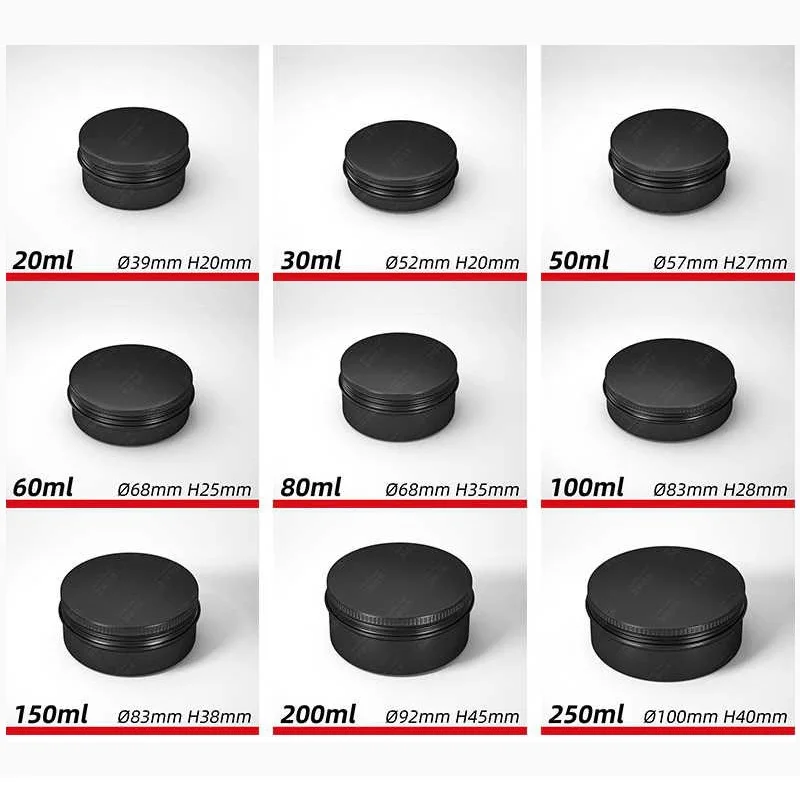 Пустые алюминиевые баночки 1 шт., черные многоразовые косметические баночки для коробка с мазью крема, бальзама для губ, инструменты для хранения