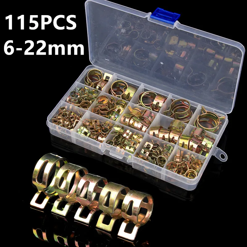 Пружинная лента для вакуумного шланга, 115 шт., силиконовая трубка с зажимом, оцинкованные зажимы, 6-22 мм, набор в ассортименте