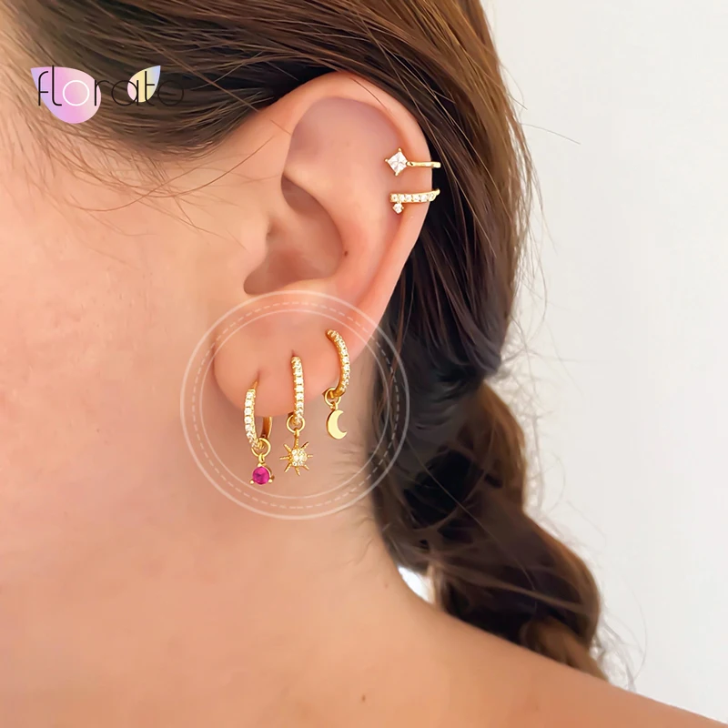 Минималистичные серьги-кольца с четырьмя небольшими подвесками, серьги-пряжки из серебра 925 пробы с Лунойзвездойкрестомбусинами для женщин, модные украшения