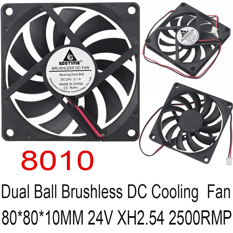 Gdstime 2Pin 80 мм x 80 мм x 10 мм охлаждающий вентилятор постоянного тока 24V