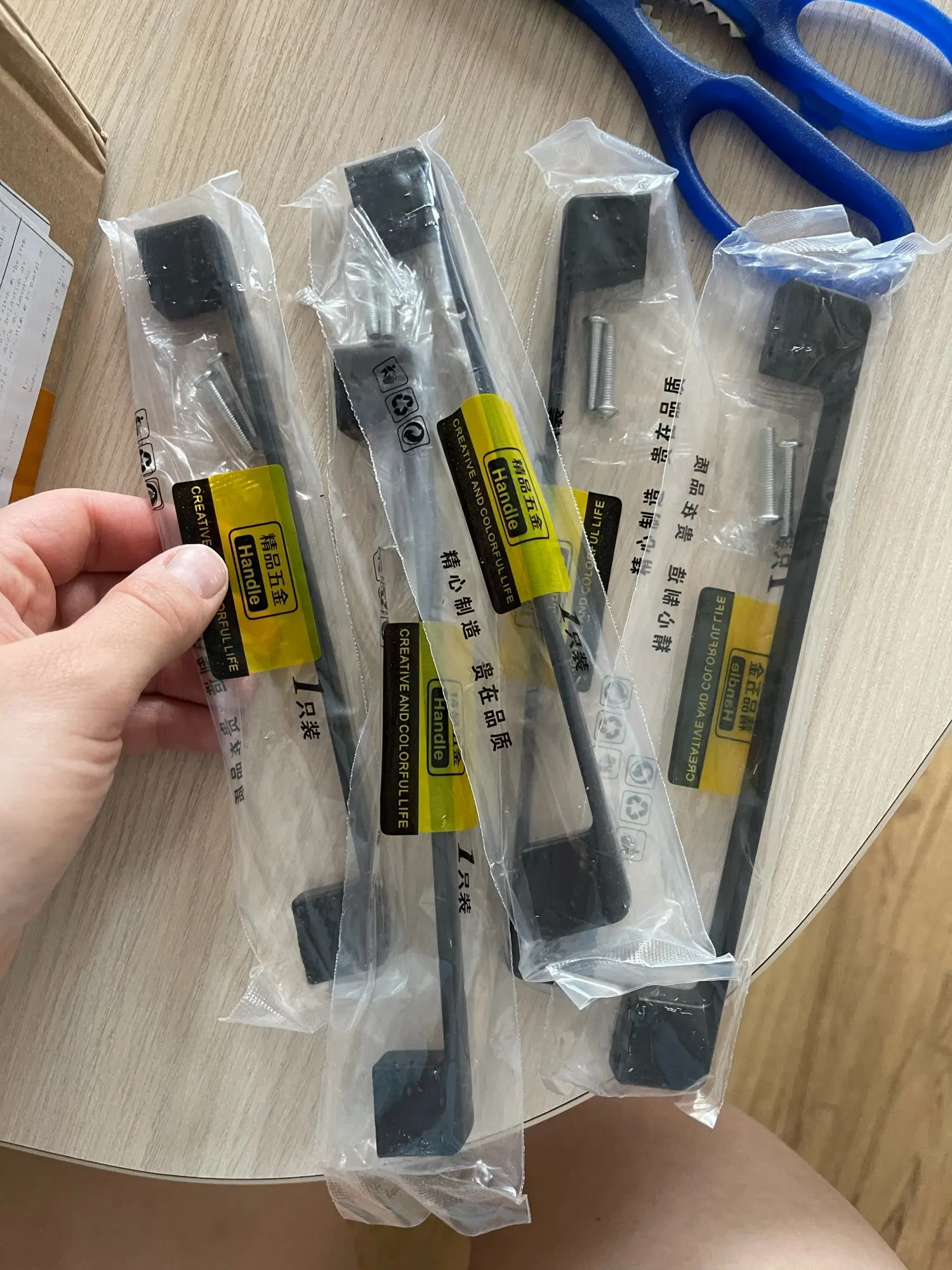 Очень быстрая доставка. За 11 дней до Твери и это в разгар майских праздников(23.04 заказала 04.05 получила). Упакованы очень хорошо. Продавцу за доставку и упаковку 5+++, умничка! Сами ручки на мой взгляд так себе. Легкие, похоже что из силумина, судя по некрашеной части, платформа, куда вкручиваются болты не ровная. Вдоль всей ручки с двух сторон идёт шов, прокрас вроде равномерный, но не похож на порошковое напыление, скорее краска. Короче, есть сомнение в их долгой жизни при активной эксплуатации. Покупала для кухни, но ставить вряд ли буду, лучше купить в той же Икее, однозначно качество будет лучше.