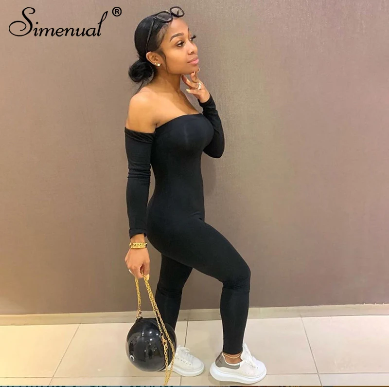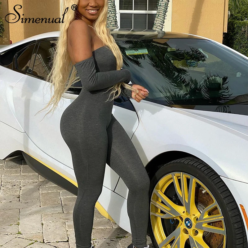 Simenual Облегающий комбинезон с открытыми плечами, женский спортивный комбинезон с длинным рукавом, одежда для тренировок, модный цельный Осенний комбинезон