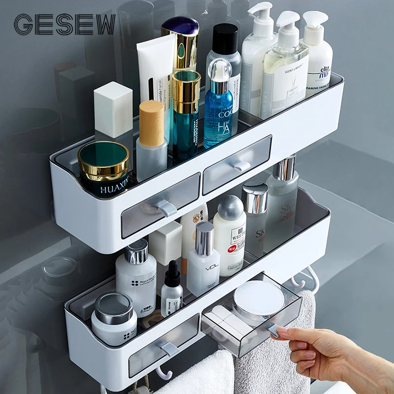 GESEW полки для хранения для ванной стеллаж для хранения шампуня Органайзер с держателем для полотенец многофункциональные аксессуары для ванной комнаты