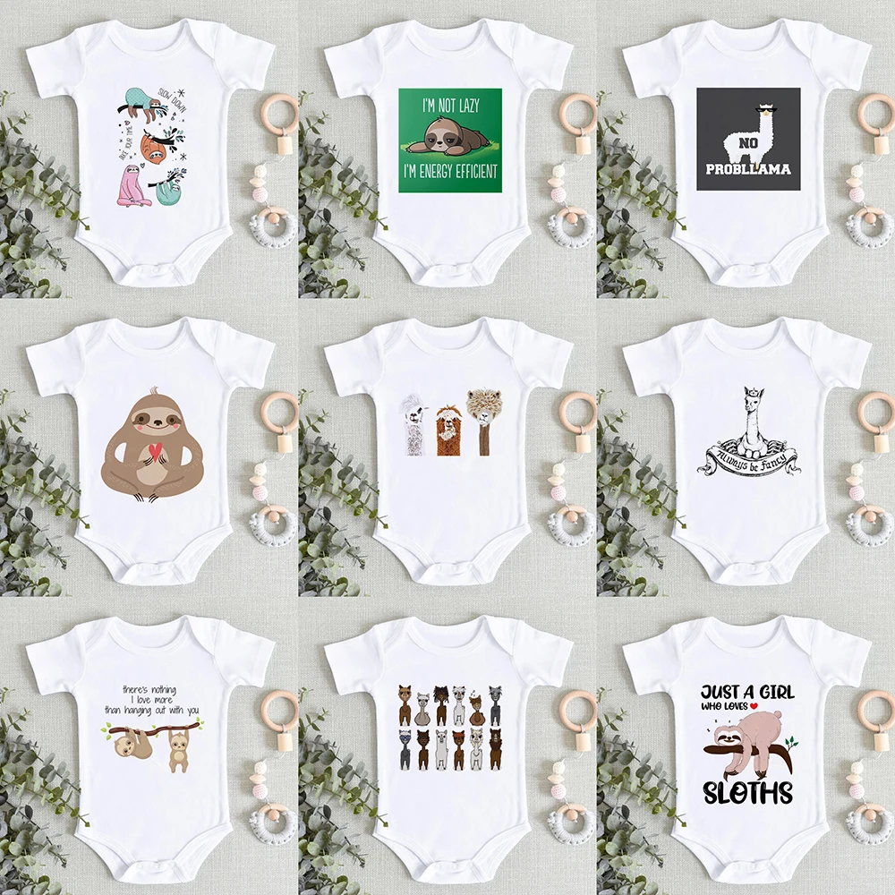 Милые Боди для новорожденных, альпака, ленивый дизайн, детские комбинезоны для мальчиков и девочек, комбинезон с коротким рукавом, наряды, детская одежда