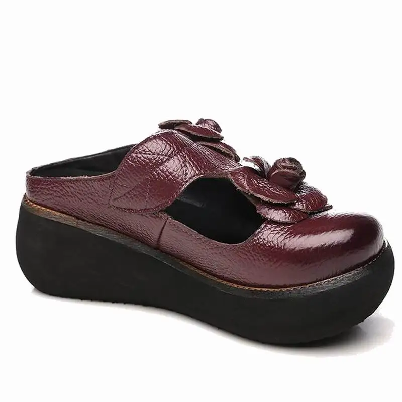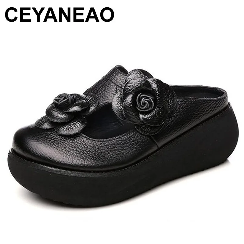 Сланцы CEYANEAO женские, натуральная кожа, летняя обувь, цветы, шлепанцы, платформа, клоги, ручная работа