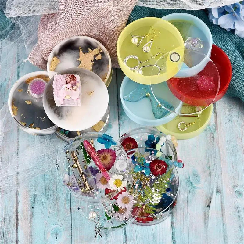 Полимерная силиконовая форма вращающаяся коробка для хранения ювелирных изделий форма для DIY эпоксидная УФ-защита круглый органайзер для макияжа формы для литья из смолы инструменты для ювелирных изделий