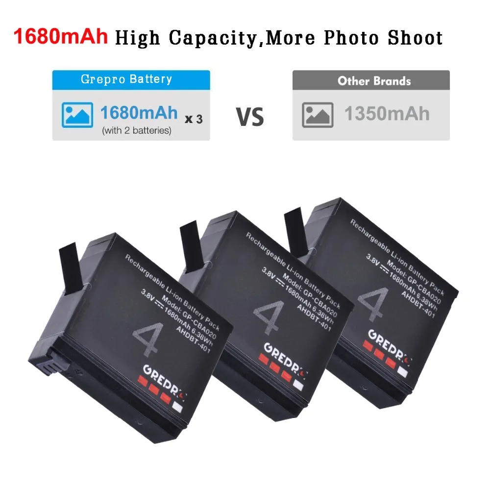 3 шт., 1680 мАч, AHDBT-401 Hero 4 батарея + 3 слота, светодиодное зарядное устройство для GoPro Hero 4, AHDBT-401 батарея для экшн-камеры