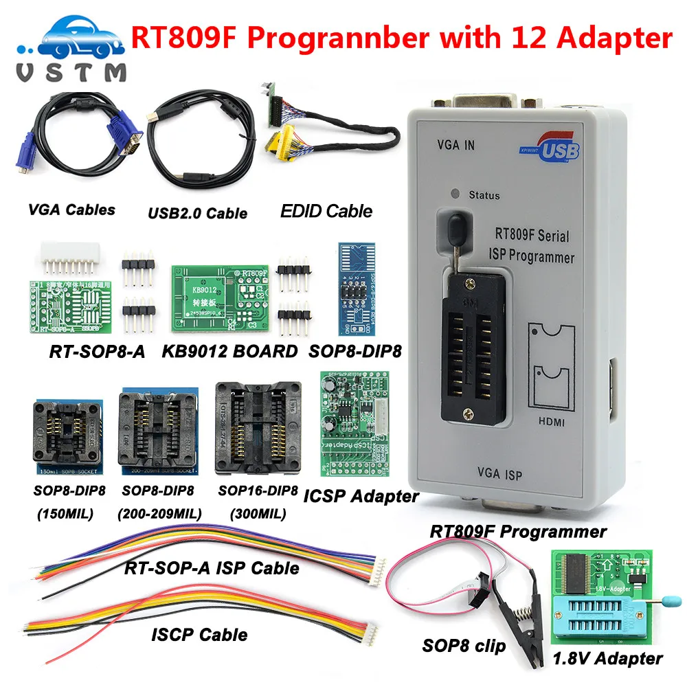 Бесплатная доставка RT809F серийный ISP программист с 11 Адаптеры + 1,8 v адаптер переменного тока + SOP8 зажим испытания лучшего качества