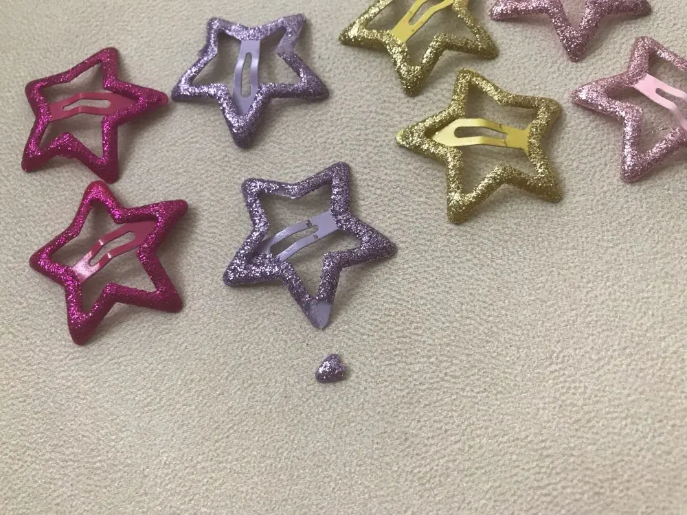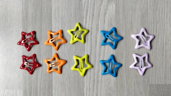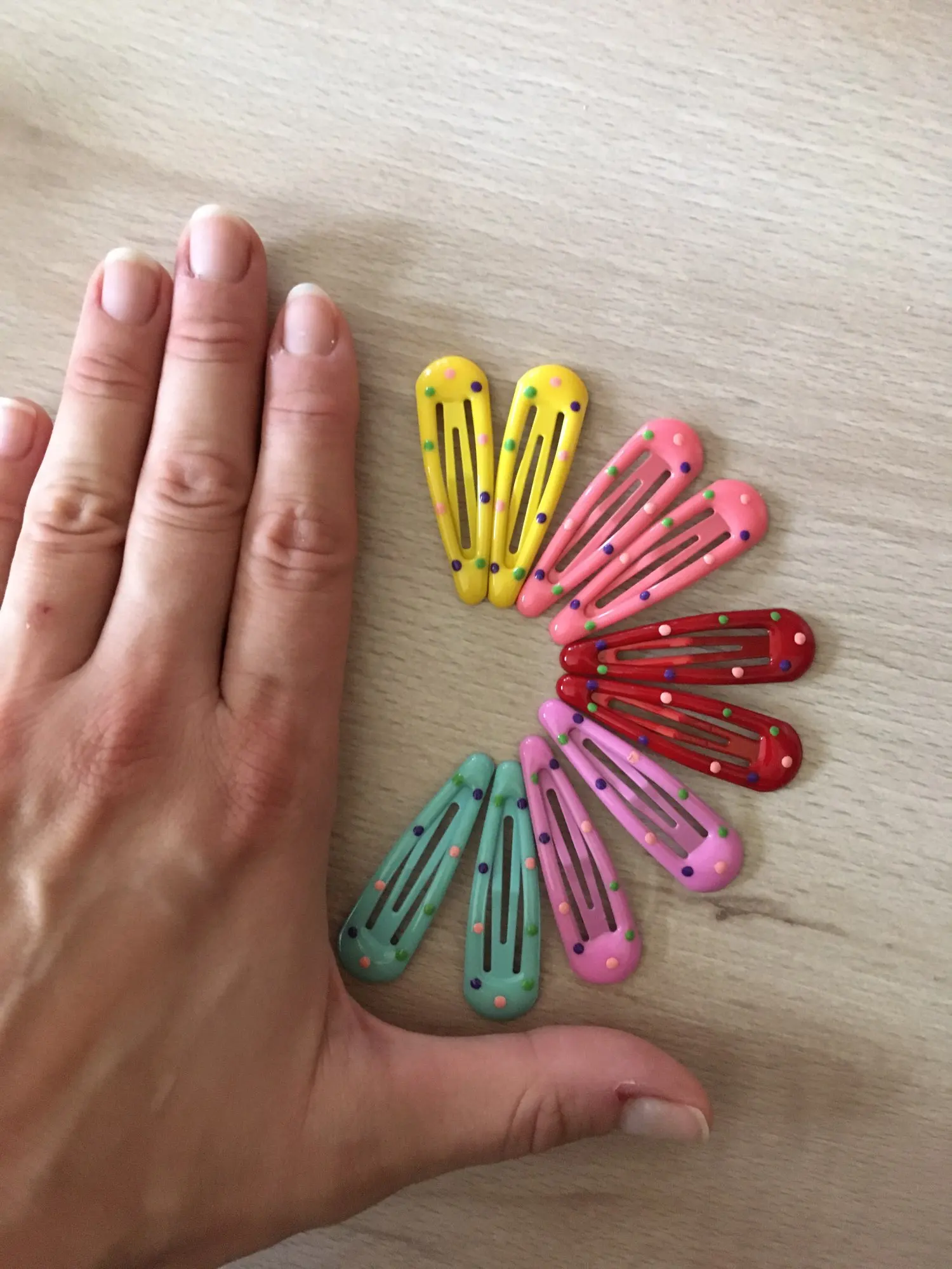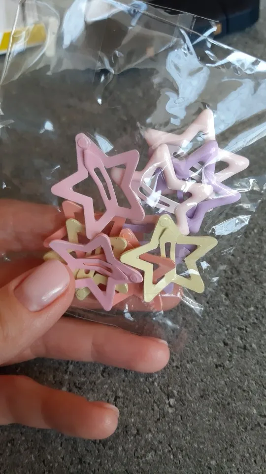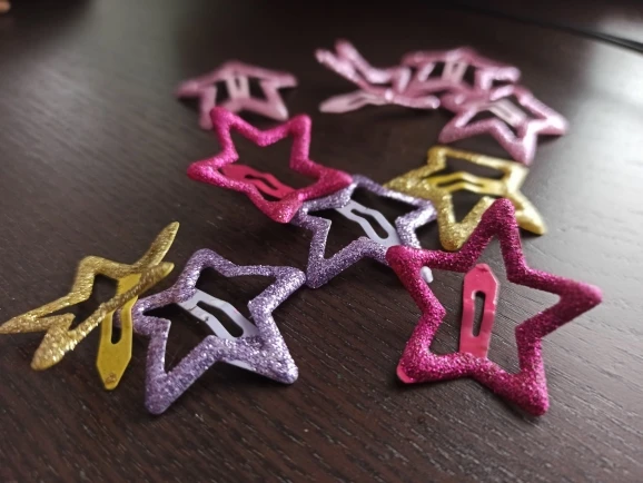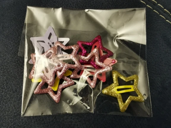 Пришло достаточно быстро, недели две. 10 шт, но одна бракованная. Налип какой-то чёрный пластик, попробуем убрать чем-то, если получится. Застегиваются хуже чем классической формы, надо приложить усилие. А так симпатичные заколки, дочка довольна!