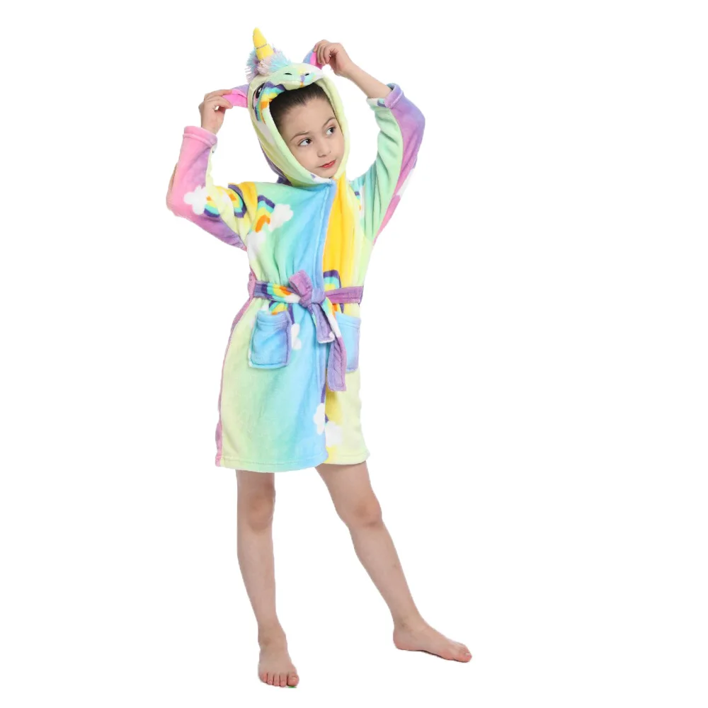 Халат детский осенне-зимний с капюшоном, банный халат с единорогом ...