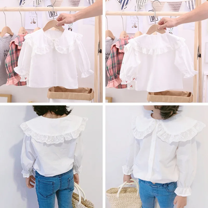 Одежда принцессы для маленьких девочек; Кружевная рубашка с длинными рукавами; Блузка; Повседневная одежда; Оптовая продажа