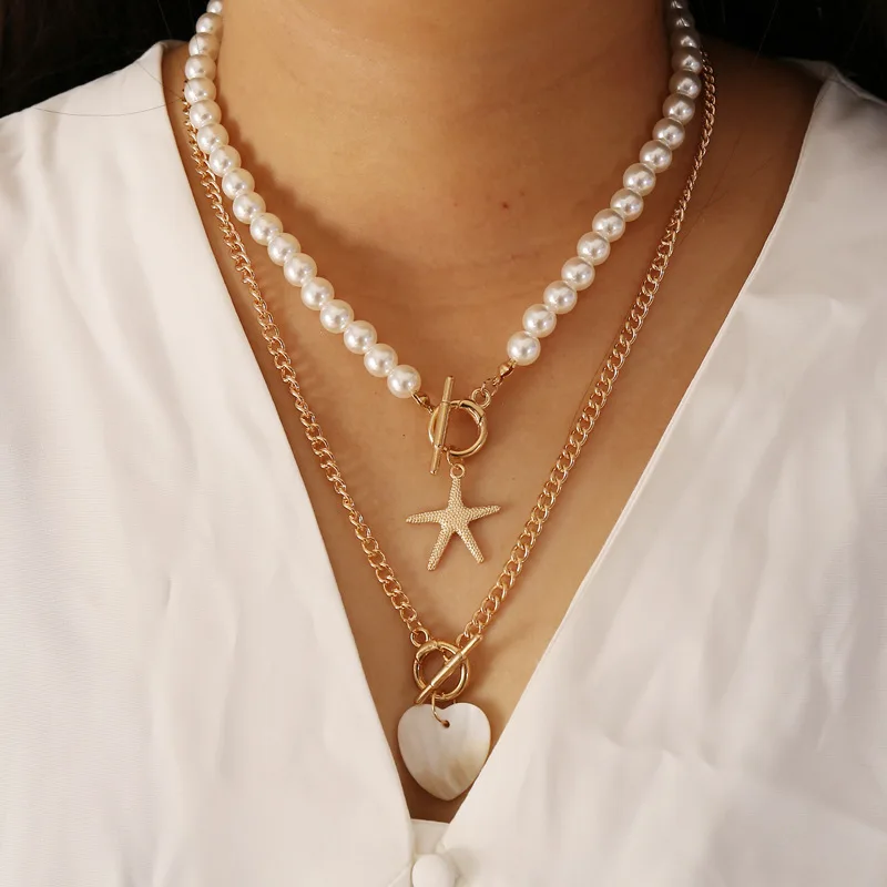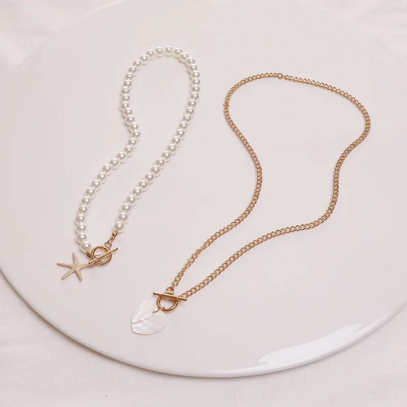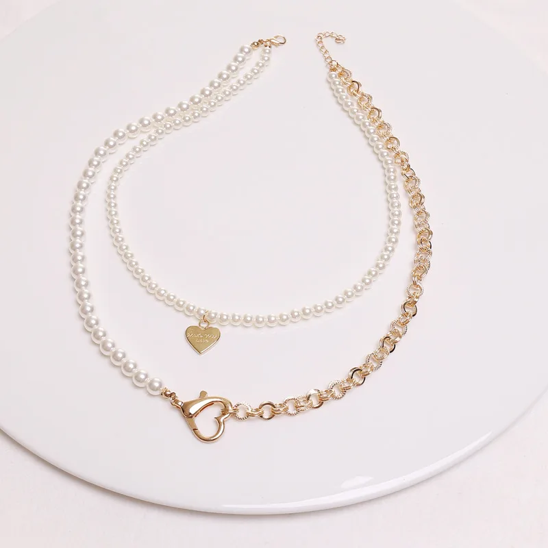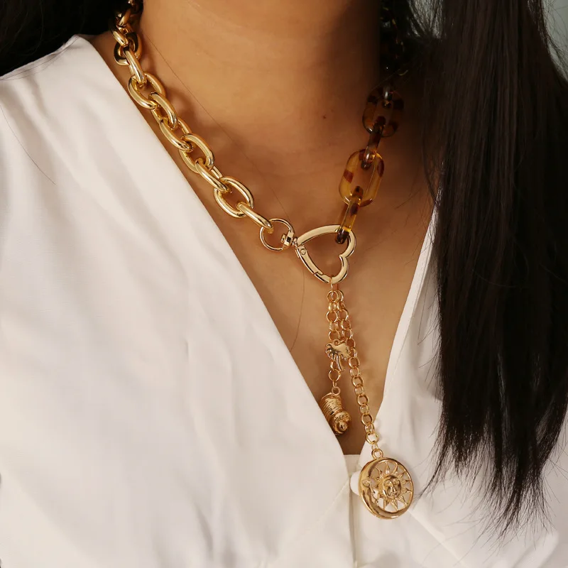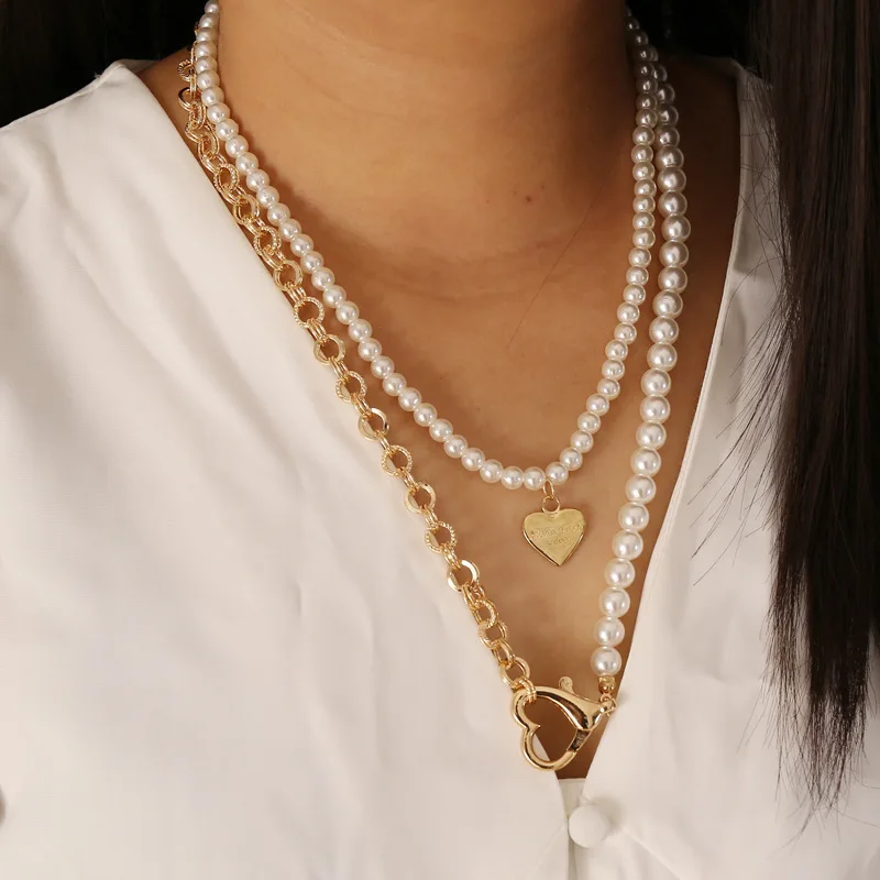 Ожерелье-чокер с роговым замком в виде сердца для женщин, Панк цепь с искусственным жемчугом, акриловые ожерелья, колье для влюбленных, ювелирное изделие, подарок