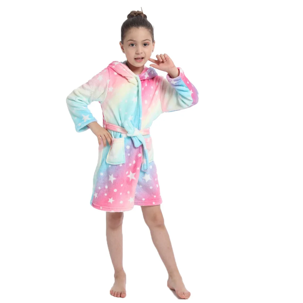 Халат детский осенне-зимний с капюшоном, банный халат с единорогом ...