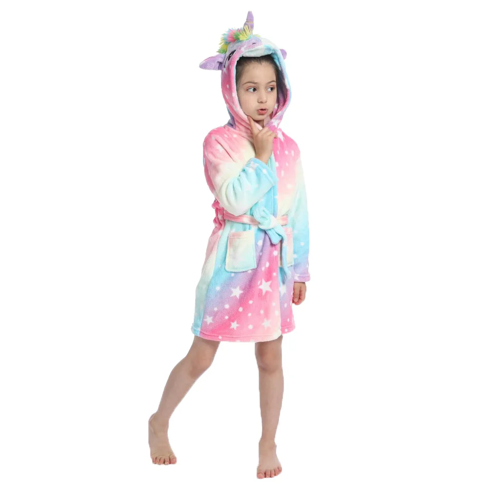 Банный халат Kigurumi в виде единорога для девочек, детская одежда ...