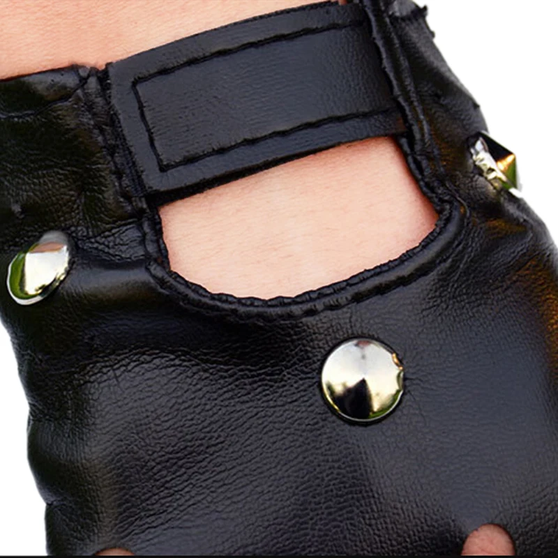 Кожаные короткие перчатки без пальцев, черные варежки с заклепками ...