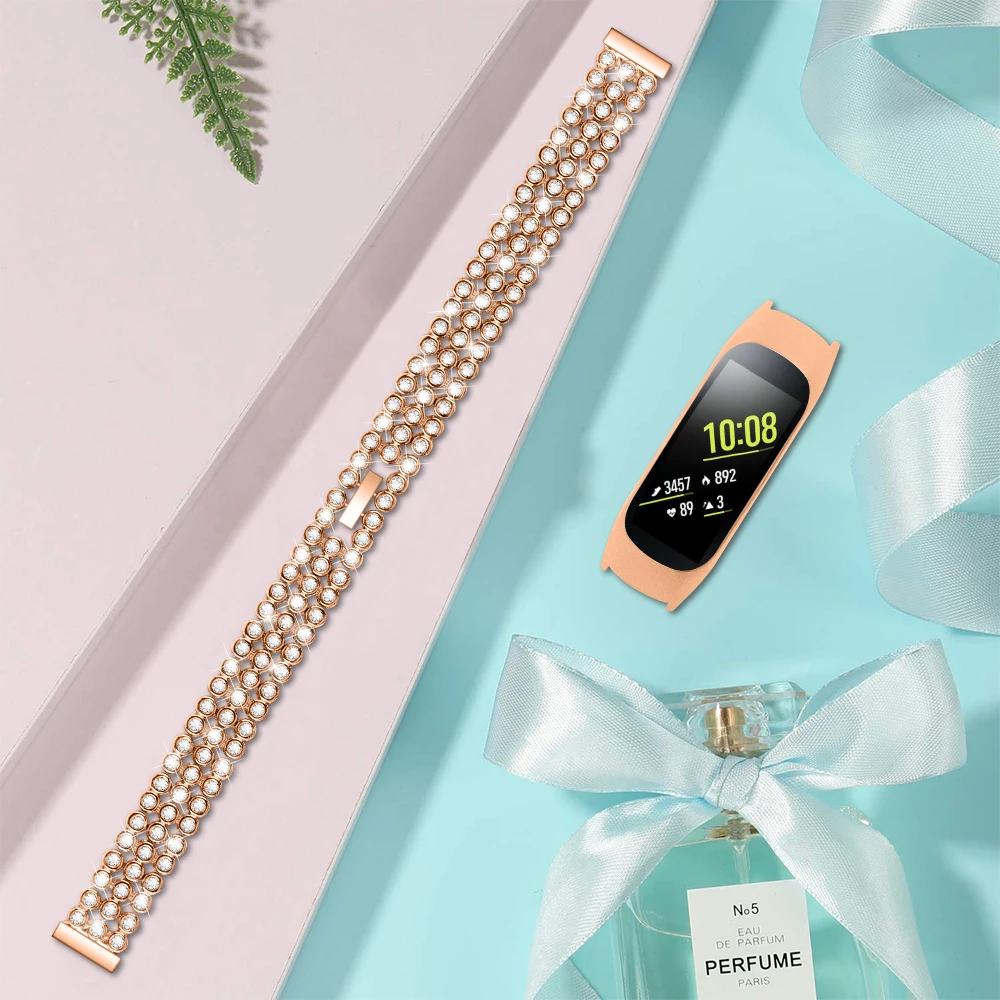 Роскошный красивый браслет из нержавеющей стали со стразами с блестящим браслетом для Samsung Galaxy Fit-e SM-R375