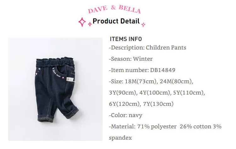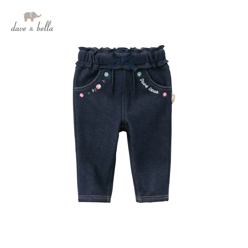 DB14849 dave bellaмодные зимние штаны с цветочным принтом и бантом для маленьких девочек детские длинные штаны брюки для малышей