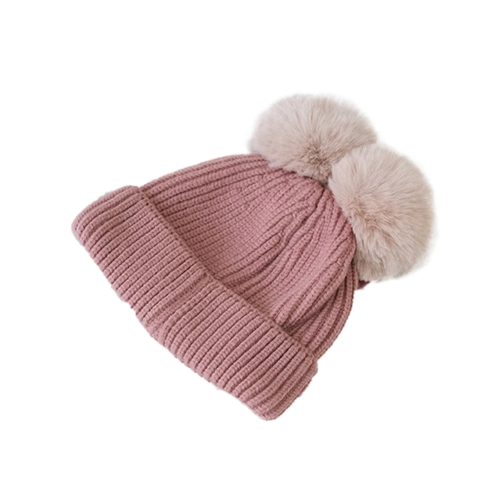 Детские вещи двойной меховая шапка с помпоном на зиму детские вязан...