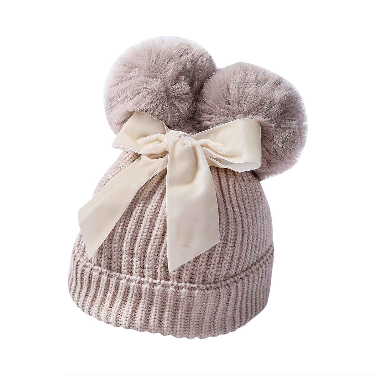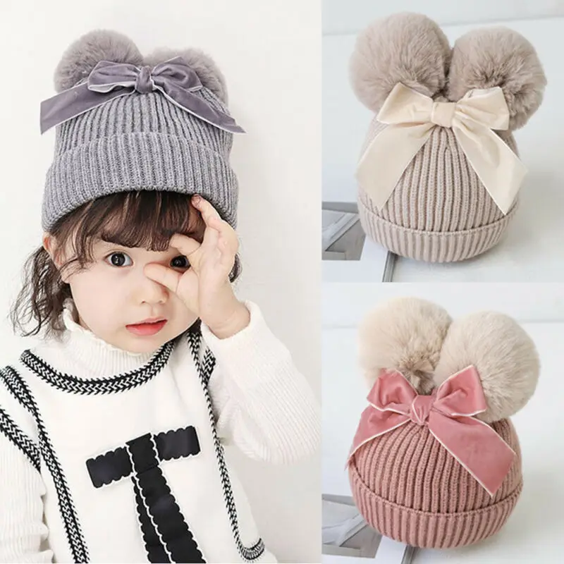 2 цвета, милая Зимняя Теплая Вязаная Шапка-бини для маленьких девоч...