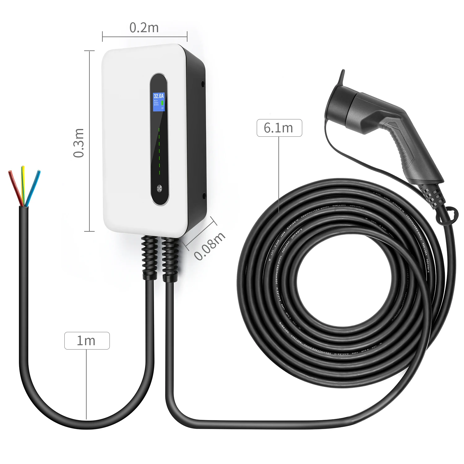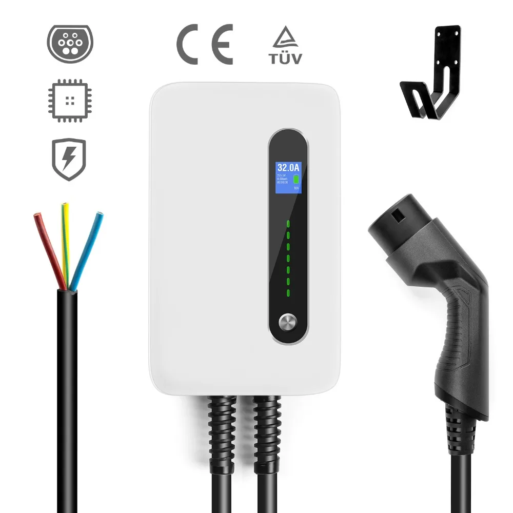 Кабель для зарядной станции для электромобилей, 32 А, зарядное устройство для электромобилей, настенное крепление EVSE, тип 2, кабель IEC 62196-2, уровень 2, 240 в, кВт