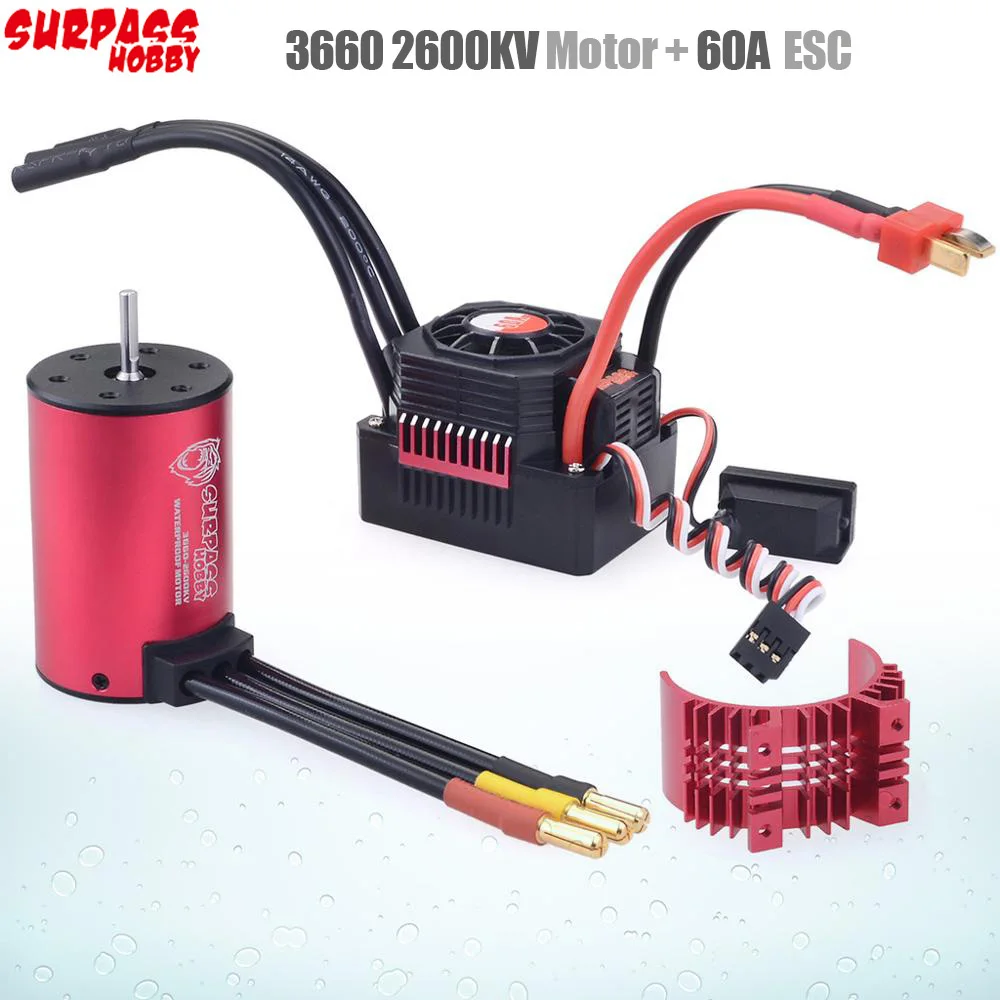 Водонепроницаемый комбинированный двигатель SURPASS HOBBY KK 3660 2600KV 3500KV с бесщеточным двигателем с радиатором 60A80A, Бесщеточный Регулятор скорости для радиоуправляемого автомобиля 18