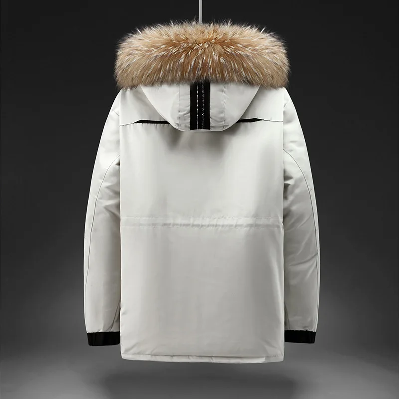 Утепленное мужское пуховое пальто с большим натуральным меховым воротником, теплая парка, повседневная плотная зимняя водонепроницаемая куртка с капюшоном на утином пуху 3XL