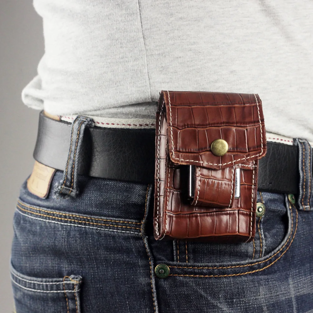 Женскиймужской кожаный чехол-бумажник с узором крокодиловая кожа, с держателем для прикуривателя, поясной ремень, чехол-футляр для сигарет