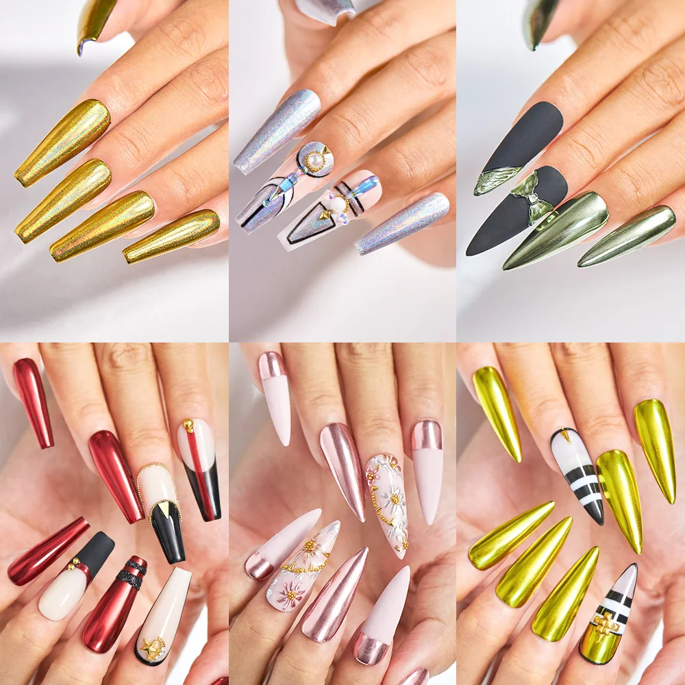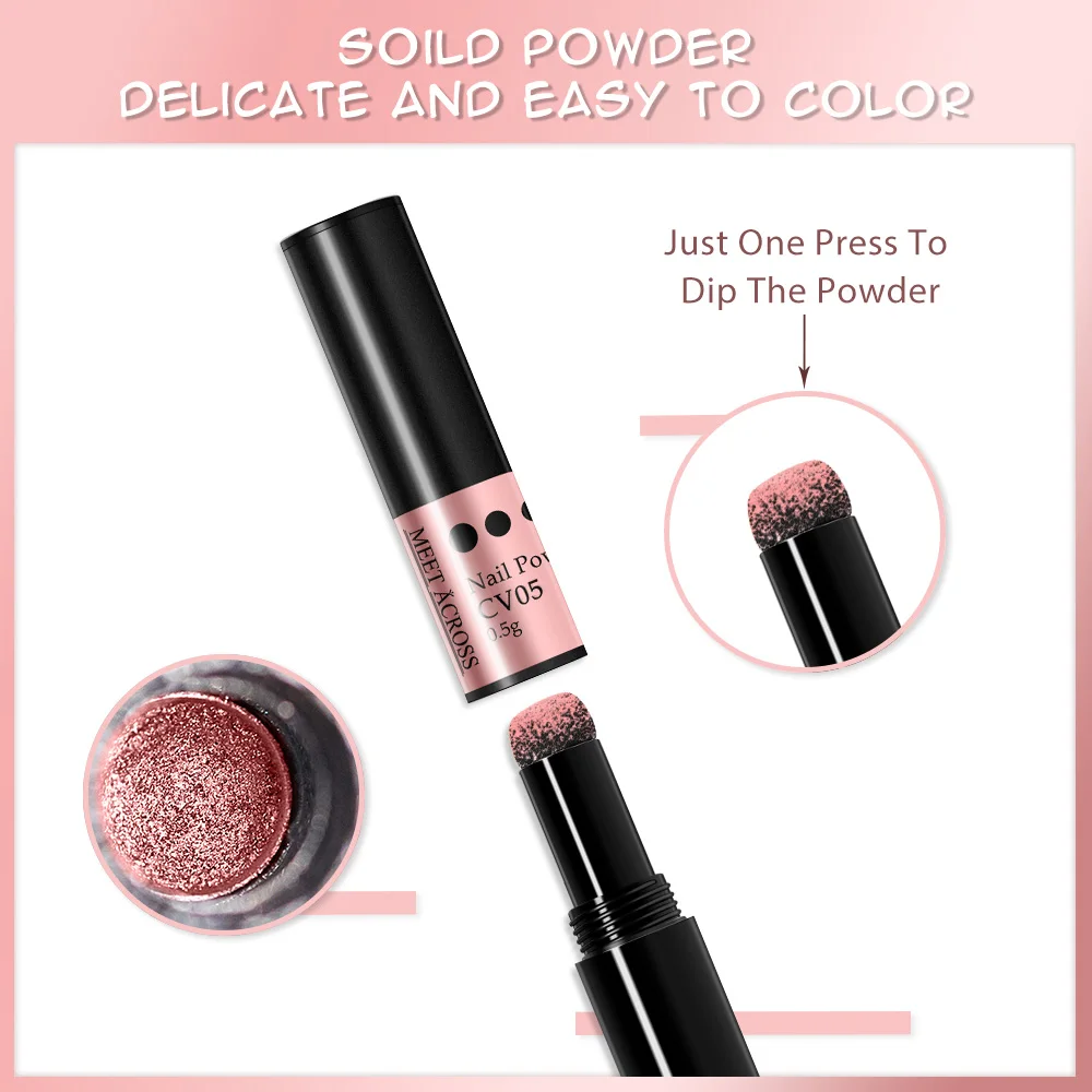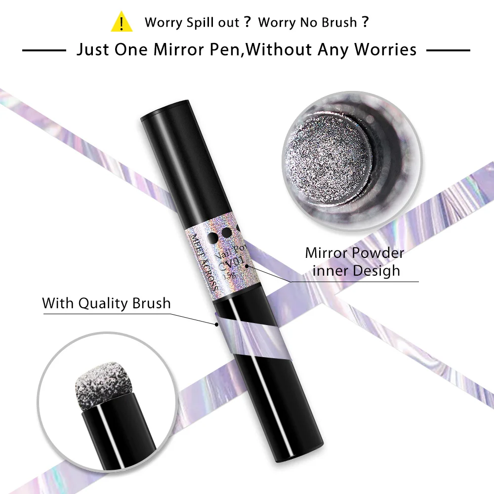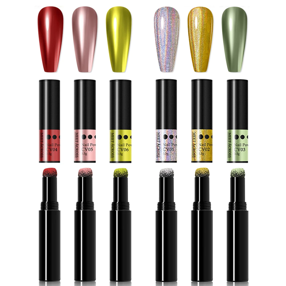 Пудра-ручка для дизайна ногтей MEET ACROSS, 0,5 г, Голографический лазерный хромированный пигмент, металлический блеск для ногтей