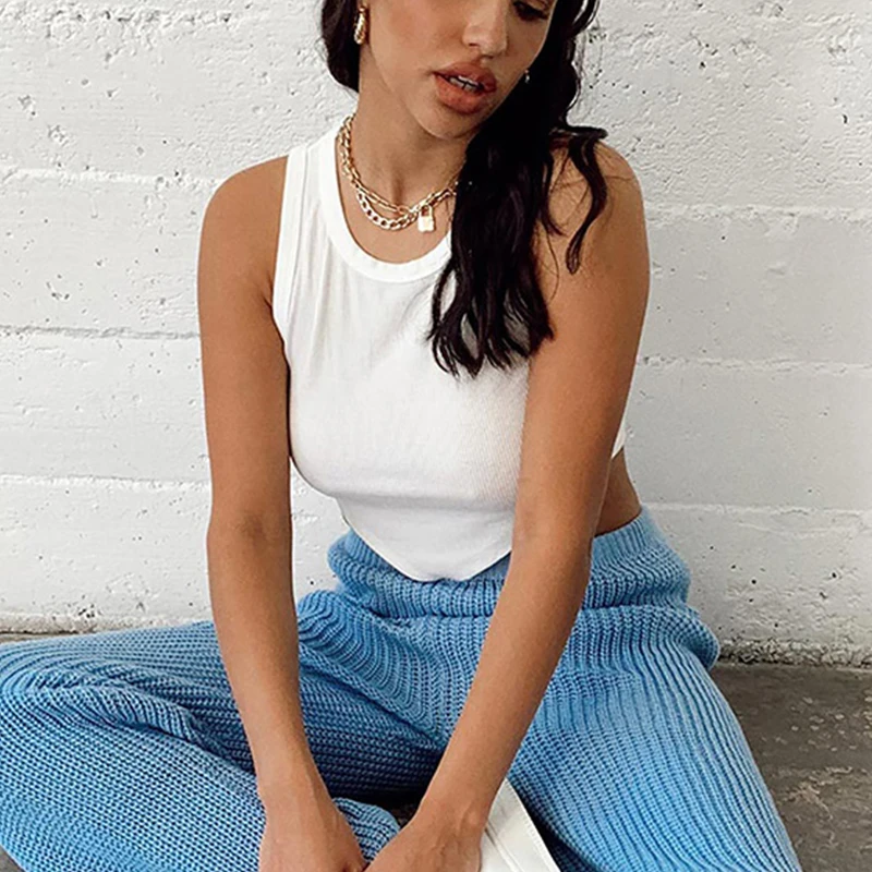 Женский топ без рукавов WannaThis, облегающий эластичный укороченный топ с круглым вырезом, Повседневная Уличная одежда, летние женские топы