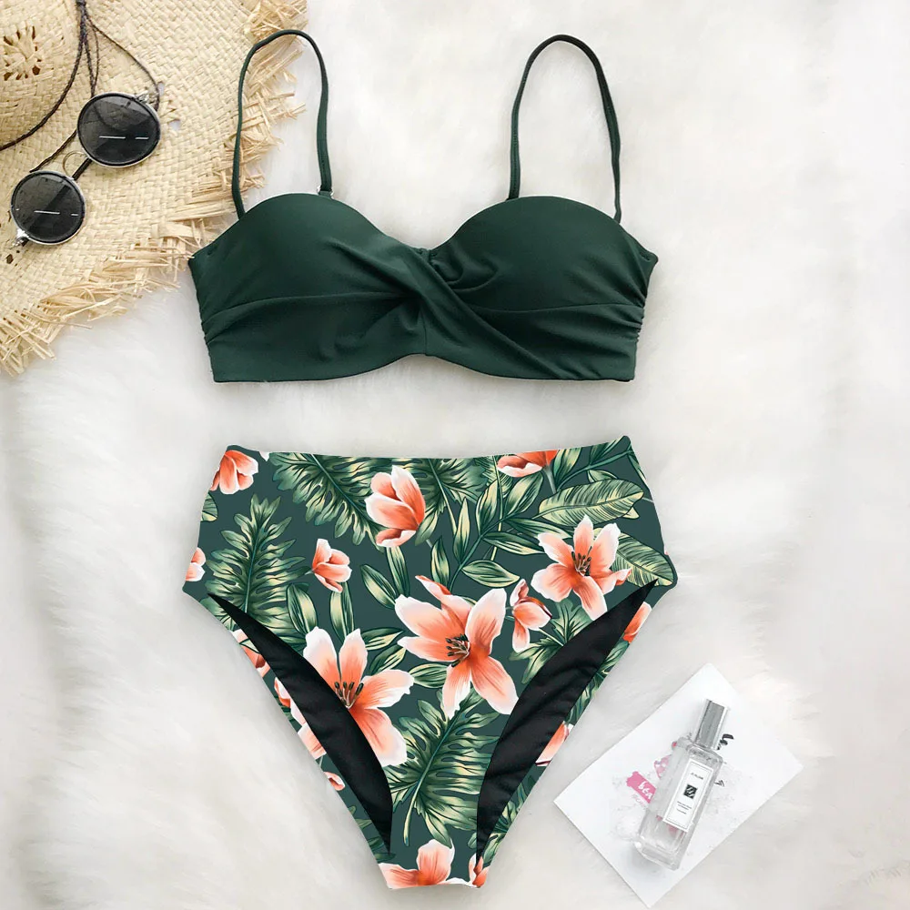 Купальник бикини женский с принтом листьев, пикантный купальный костюм, стринги, набор Пуш-ап бикини, купальный костюм с высокой талией, 2020