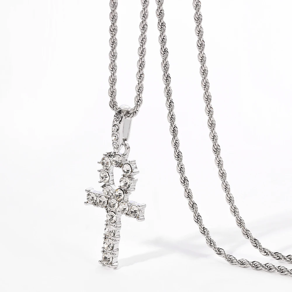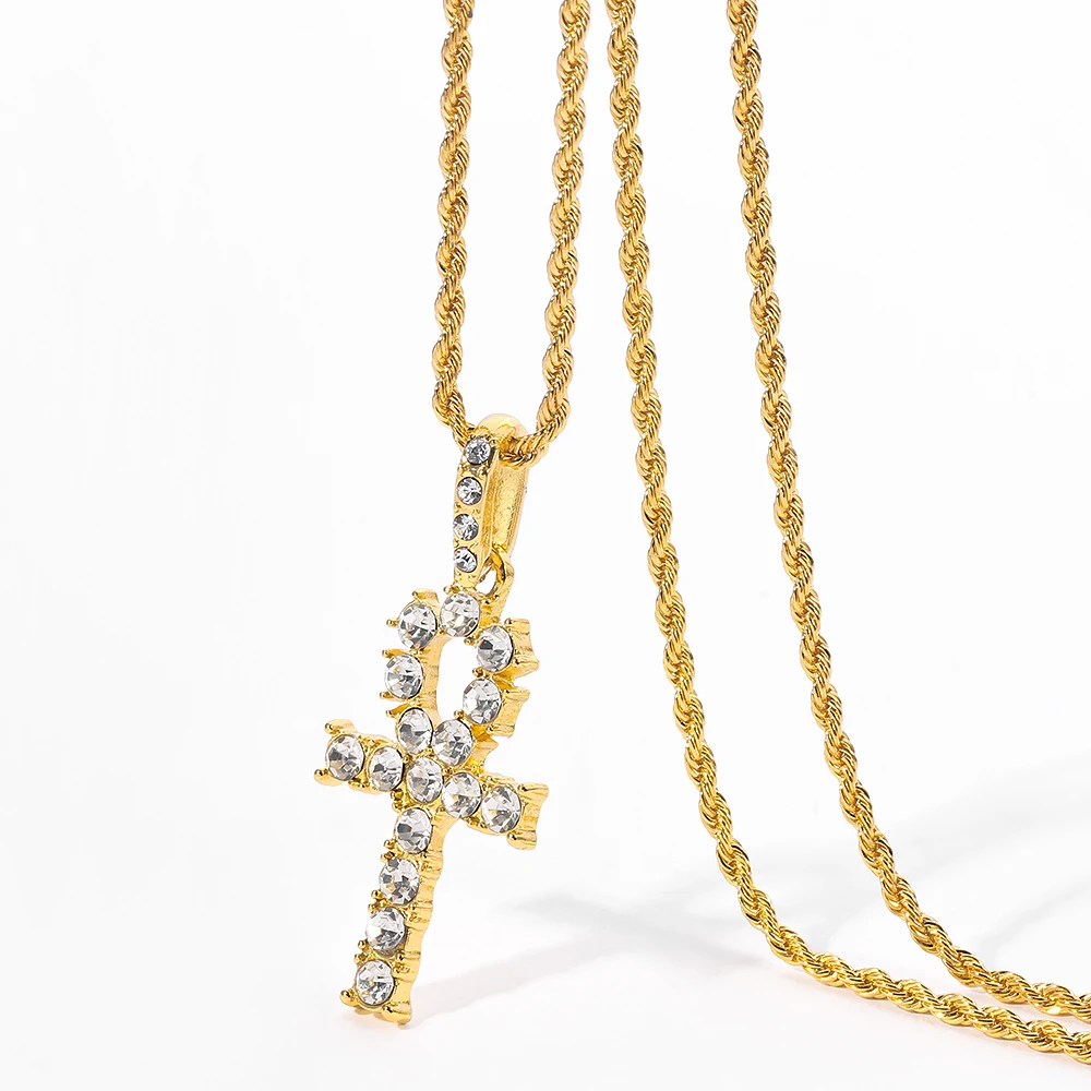 Египетский Анкх подвеска-крестик со стразами ожерелье для женщин/мужчин ключ жизни золотой цвет Египет иероглифы хип-хоп ожерелье подарок