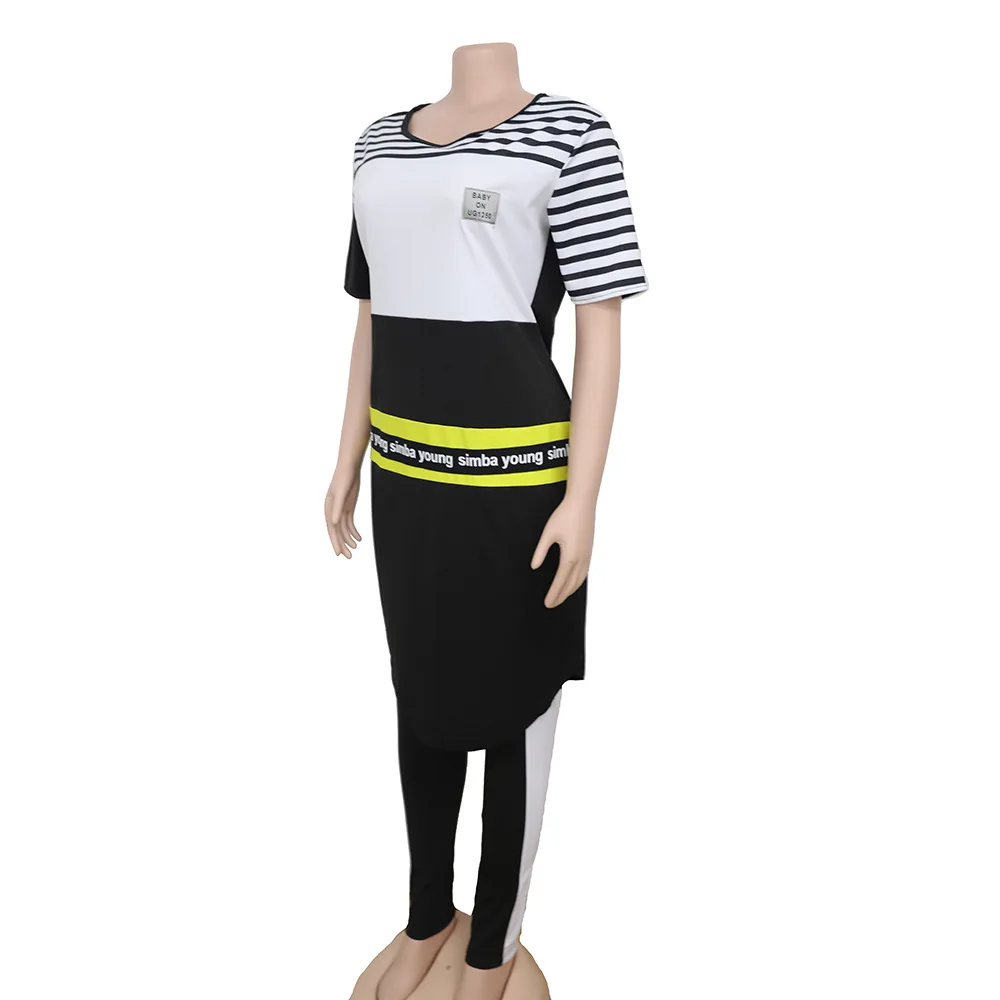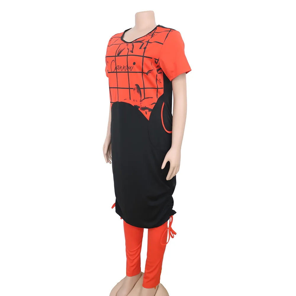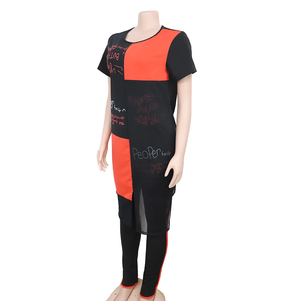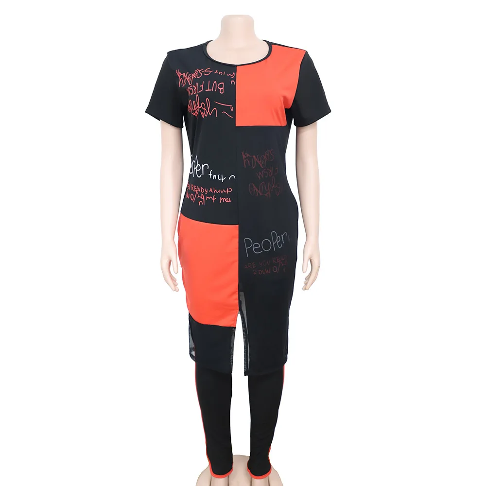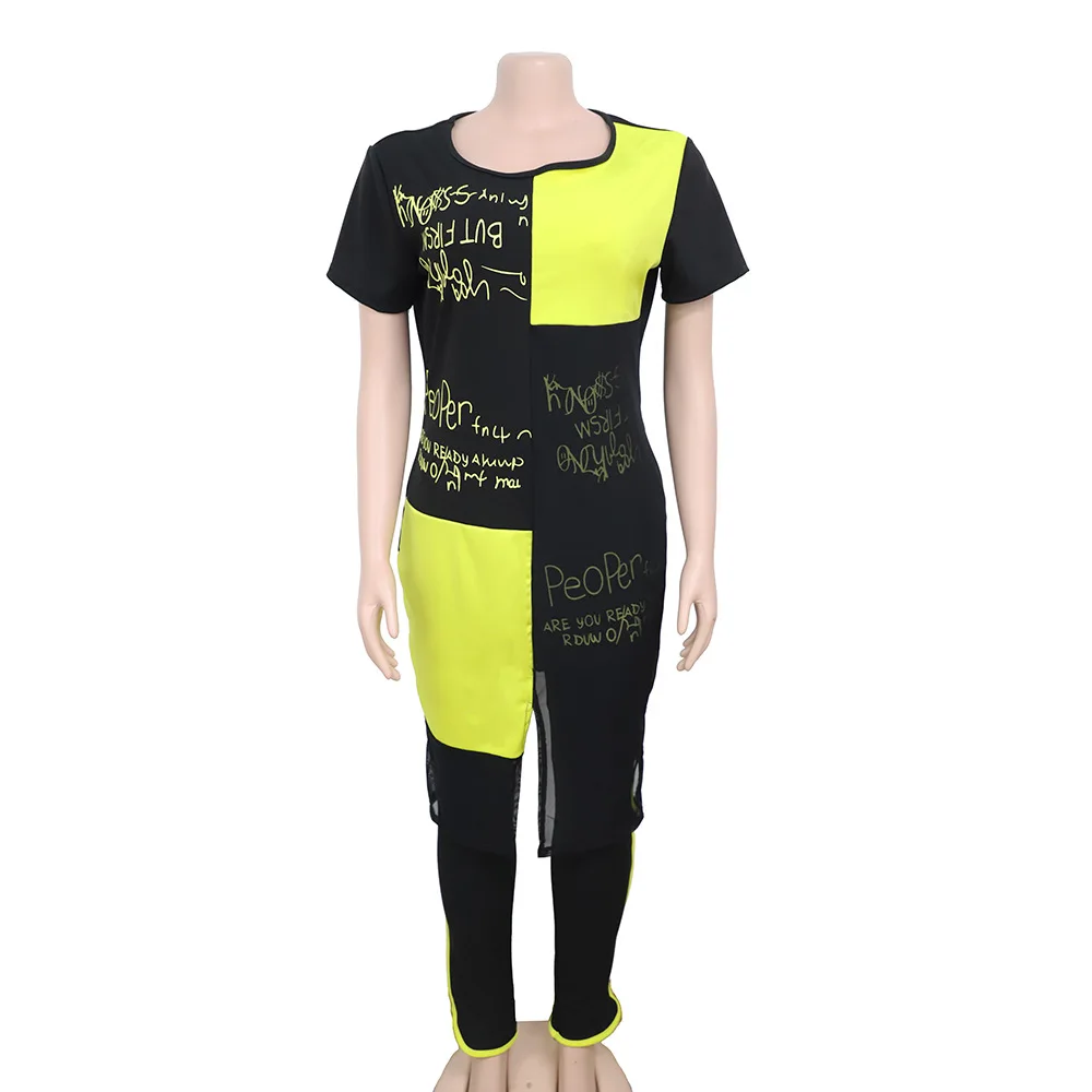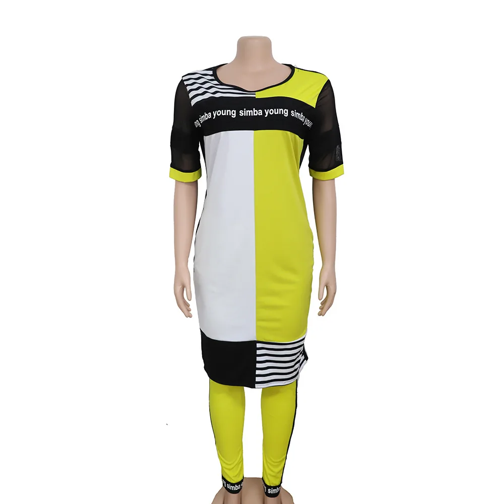 Женский комплект из двух предметов, в африканском стиле, топ с длинными узкими штанами, сетчатый спортивный костюм в стиле пэчворк, размера плюс, 4XL, 3XL