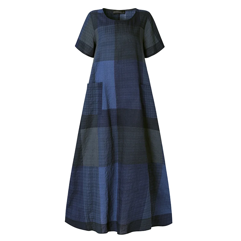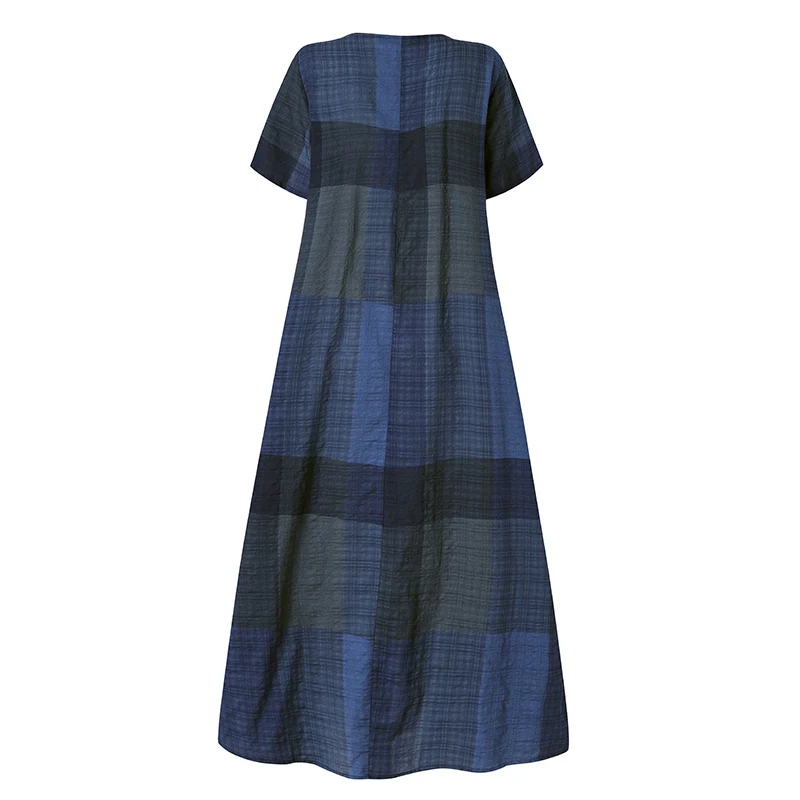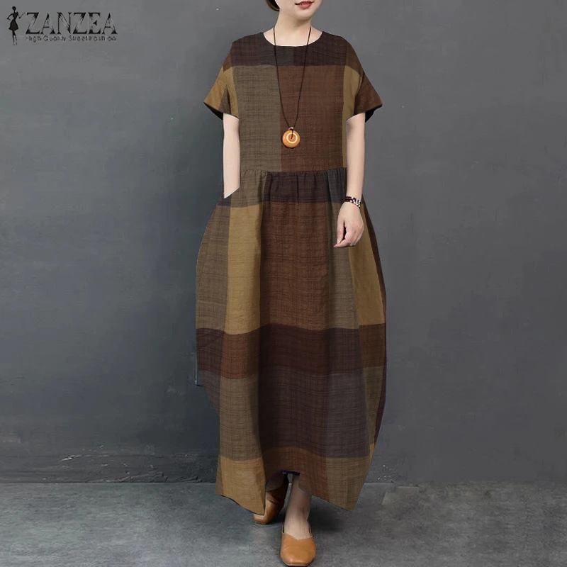 Платье ZANZEA женское длинное в клетку, вечерние ний кафтан, мешковатый сарафан с коротким рукавом, лето 2021