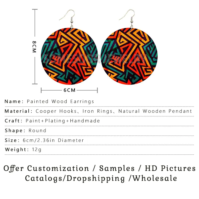 SOMESOOR напечатаны большие обручи женские афро деревянные висячие ...