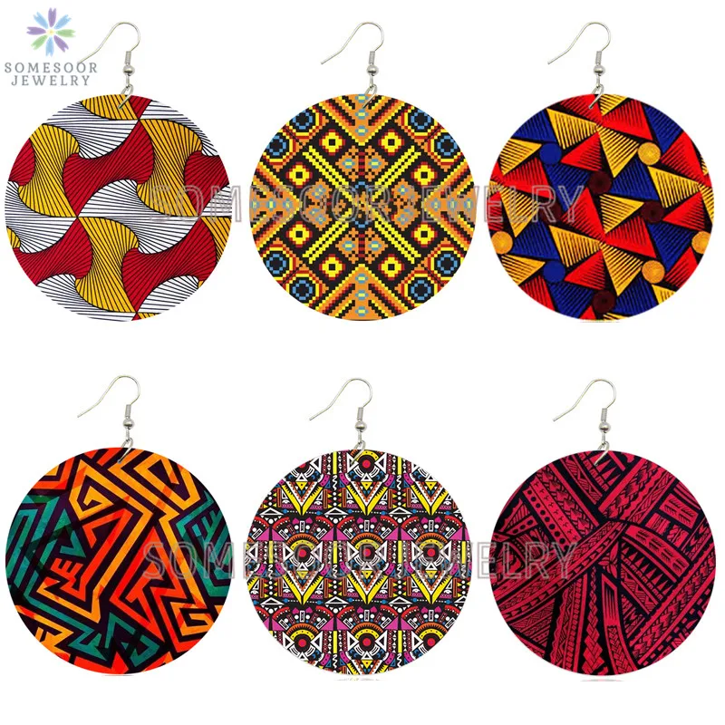 SOMESOOR afroцентрические этнические богемные Дизайнерские деревянные висячие серьги с тканевым рисунком с обеих сторон ушные петли для женщин Подарки