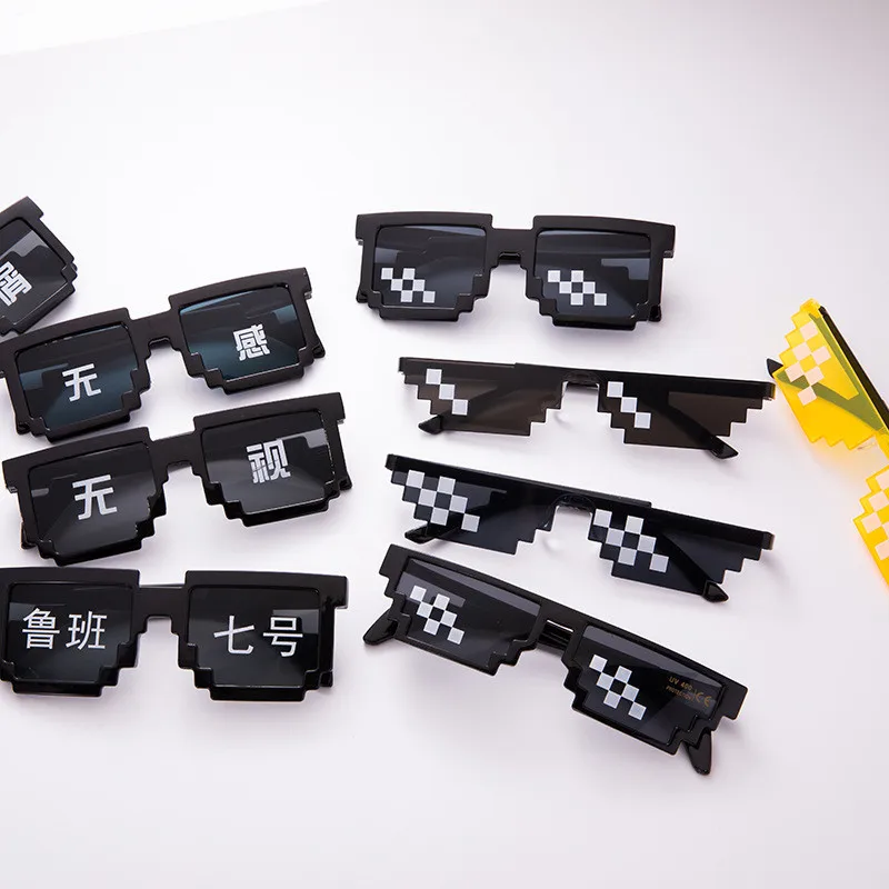 Мозаичные солнцезащитные очки, очки для розыгрышей хулиганской жизни, модные крутые очки с кодированием пикселей, женские и мужские черные мозаичные солнцезащитные очки, забавные детские очки
