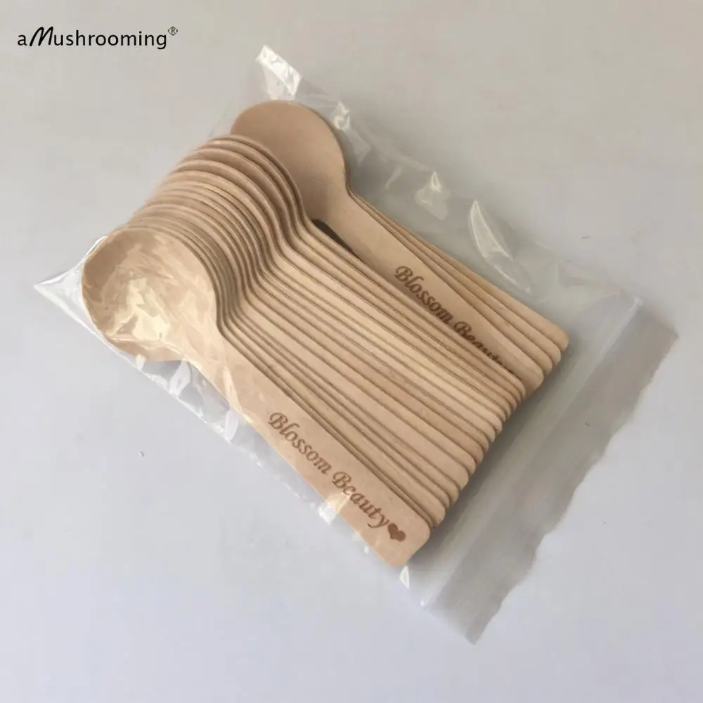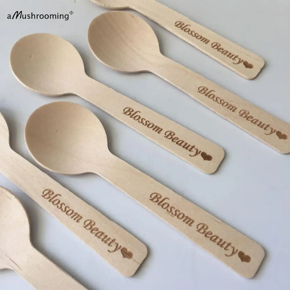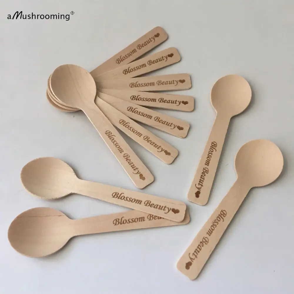 Оптом Мини деревянные ложки для косметики на заказ Выгравированные 100 шт. биоразлагаемая красота ложка уход за кожей крем для лица маска шпатель