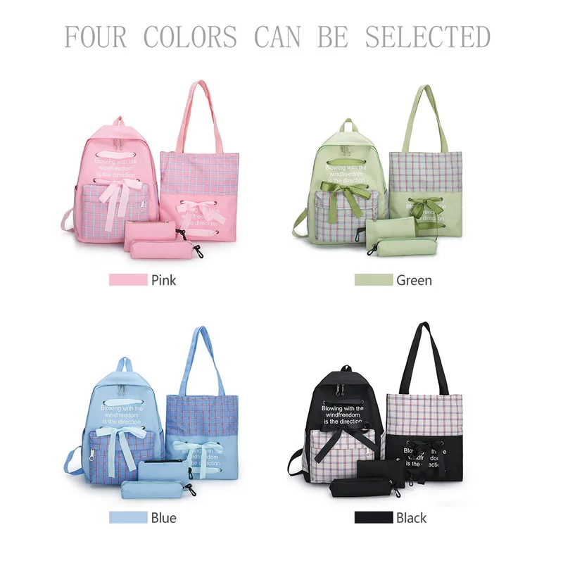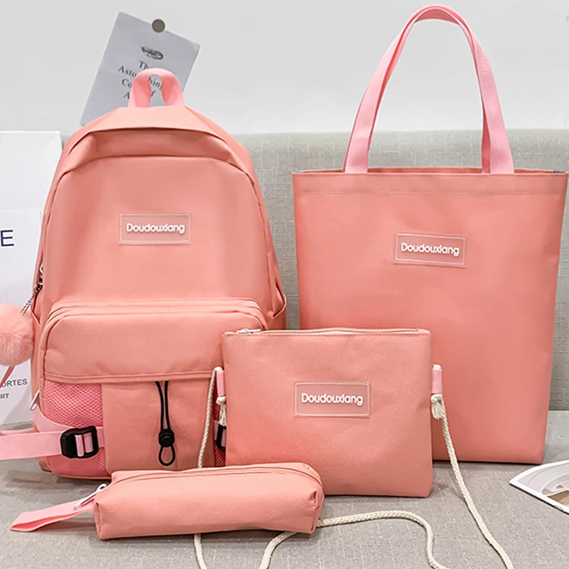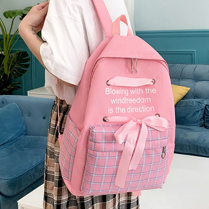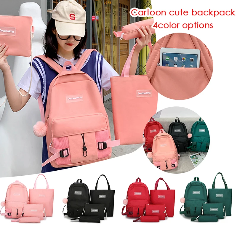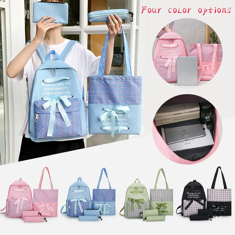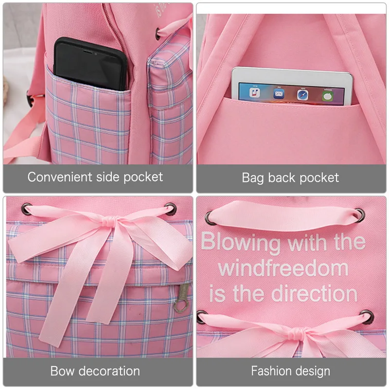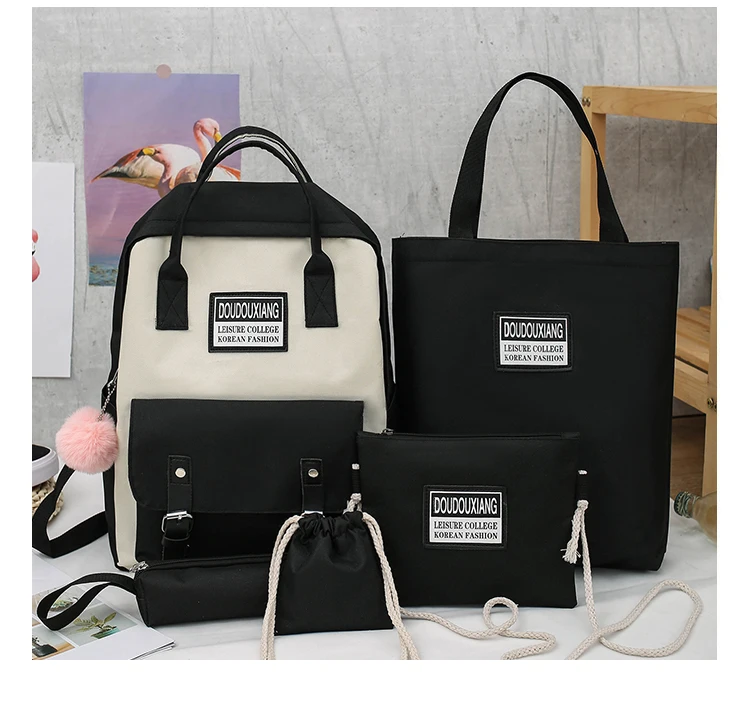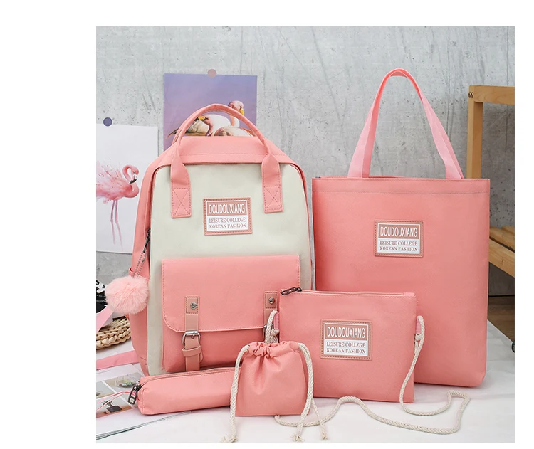 Набор из 5 холщовых женских рюкзаков, школьный ранец для девочек-подростков, сумка на плечо для ноутбука 15,6