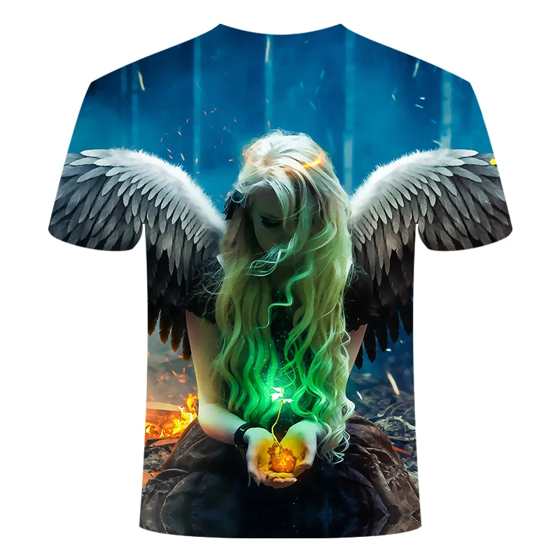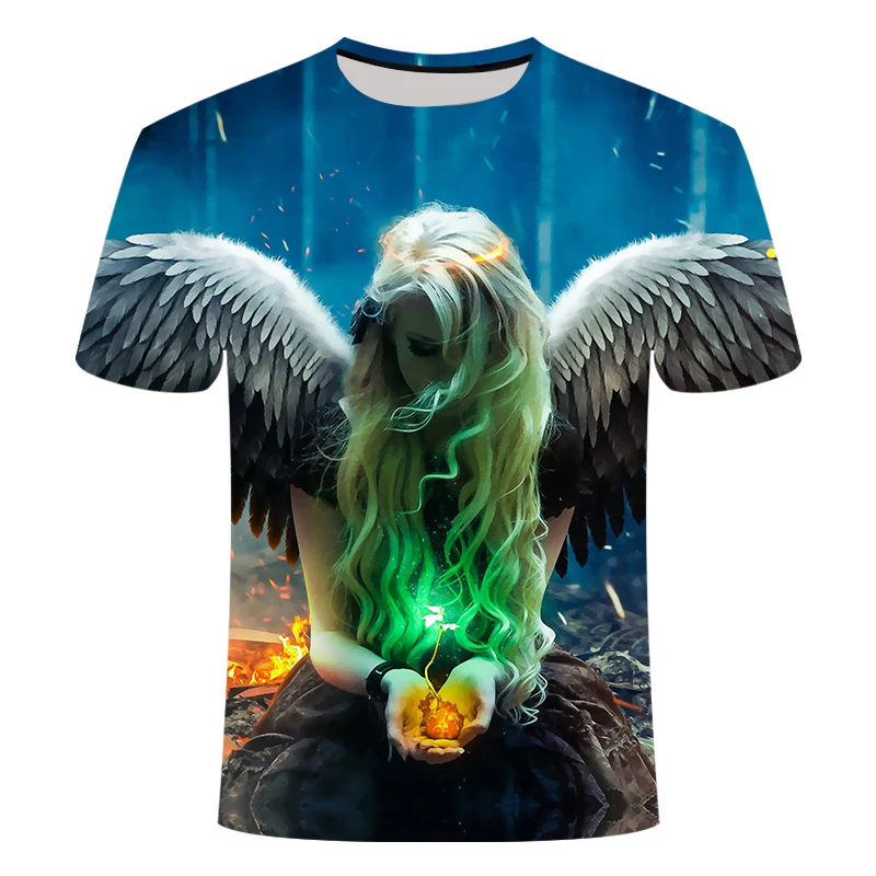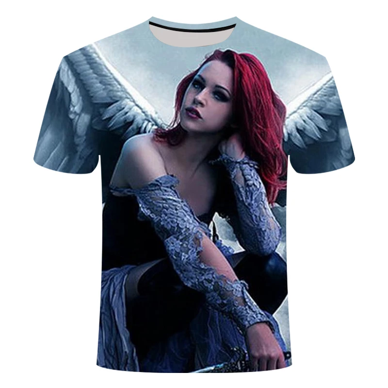 Новинка 2020, Мужская футболка, модная брендовая футболка в стиле хип-хоп, Мужскаяженская летняя футболка с 3d рисунком, футболка с ангелом, футболка, Прямая поставка, женская футболка